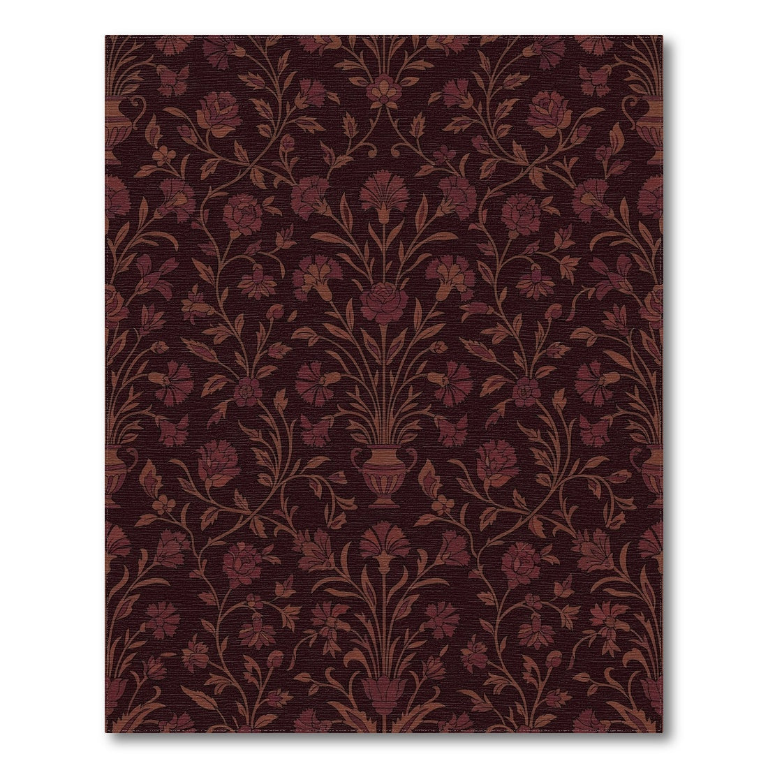 Flatwoven High Traffic Area Rug, Deep Burgundy Floral Vase Arrangement Rug, Non Slip, Stain Resistant, Washable Area Rugs for Living Room, Bedroom Overview: