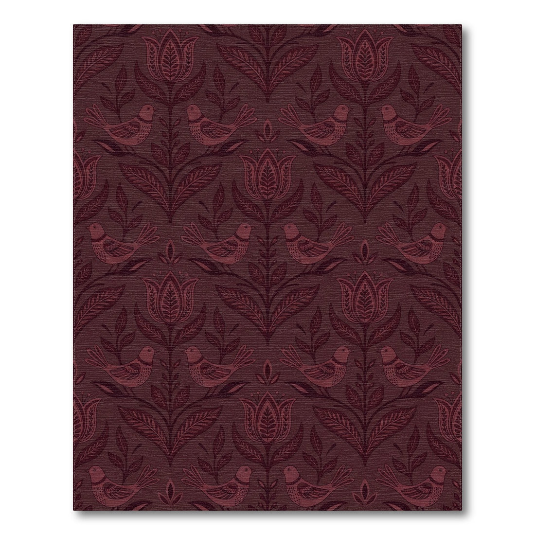 Flatwoven High Traffic Area Rug, Deep Crimson Bird Floral Medallion Rug, Non Slip, Stain Resistant, Washable Area Rugs for Living Room, Bedroom Overview:
