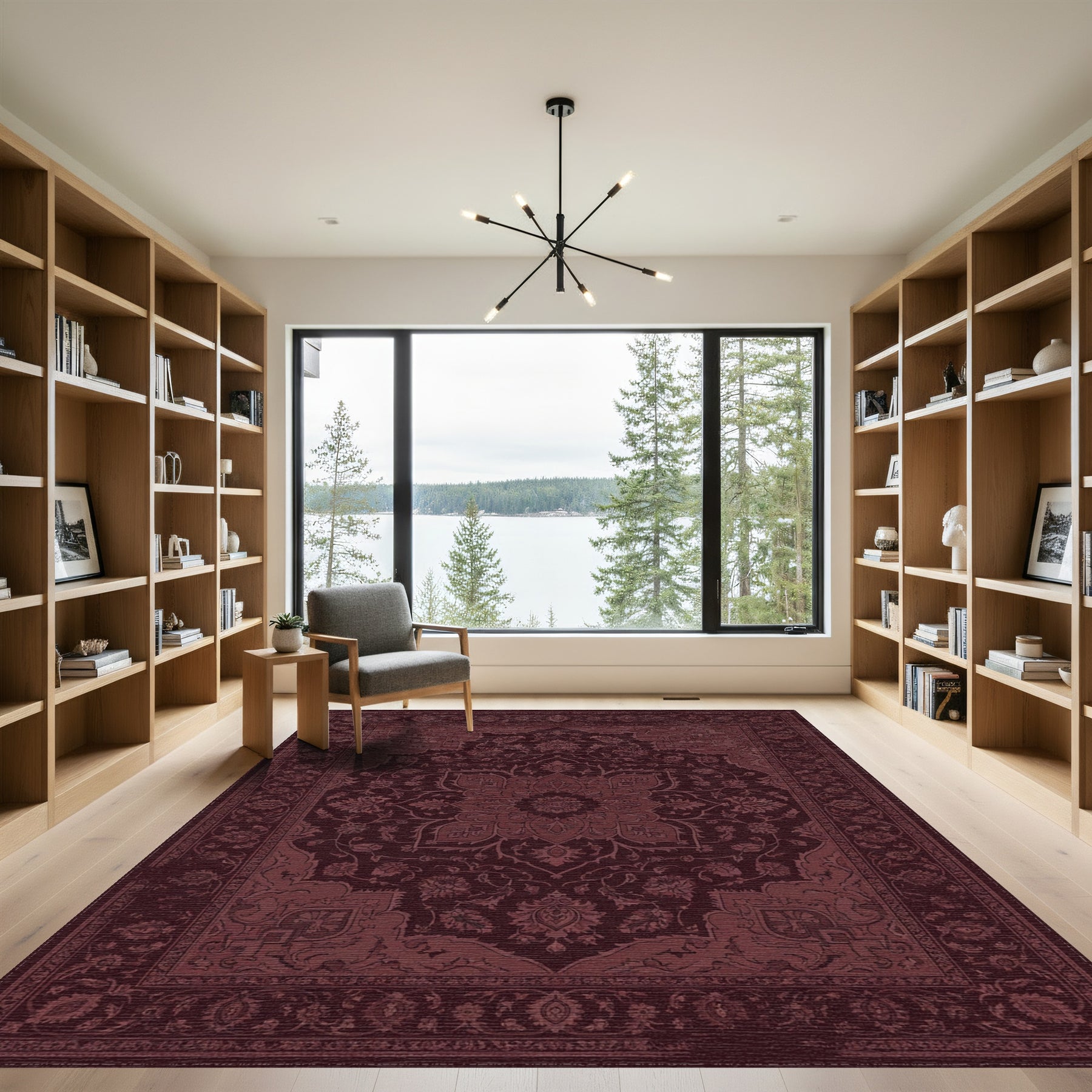 Flatwoven High Traffic Area Rug, Deep Maroon Floral Medallion Center Rug, Non Slip, Stain Resistant, Washable Area Rugs for Living Room, Bedroom Overview: