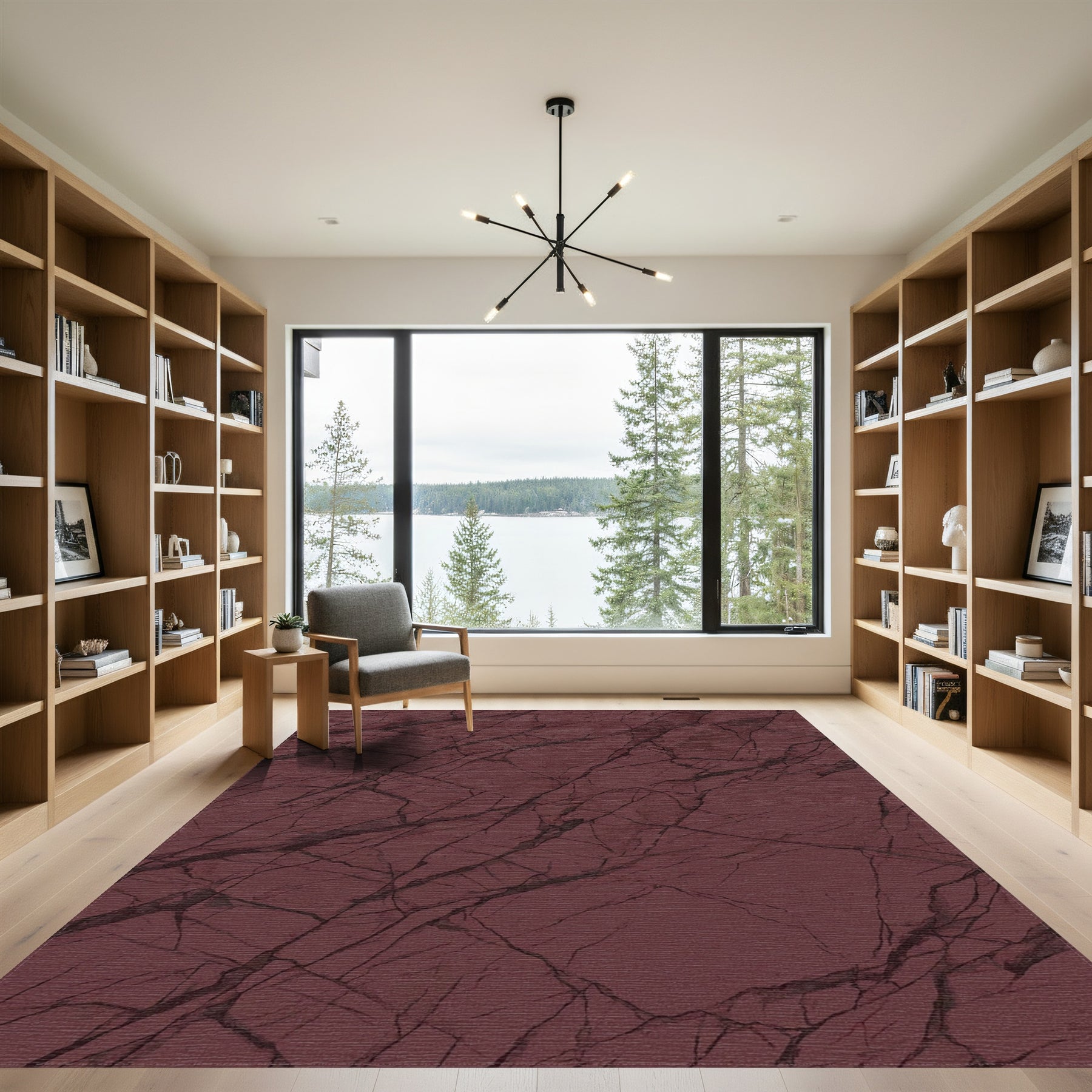 Flatwoven High Traffic Area Rug, Deep Red Veined Stone Texture Rug, Non Slip, Stain Resistant, Washable Area Rugs for Living Room, Bedroom Overview:
