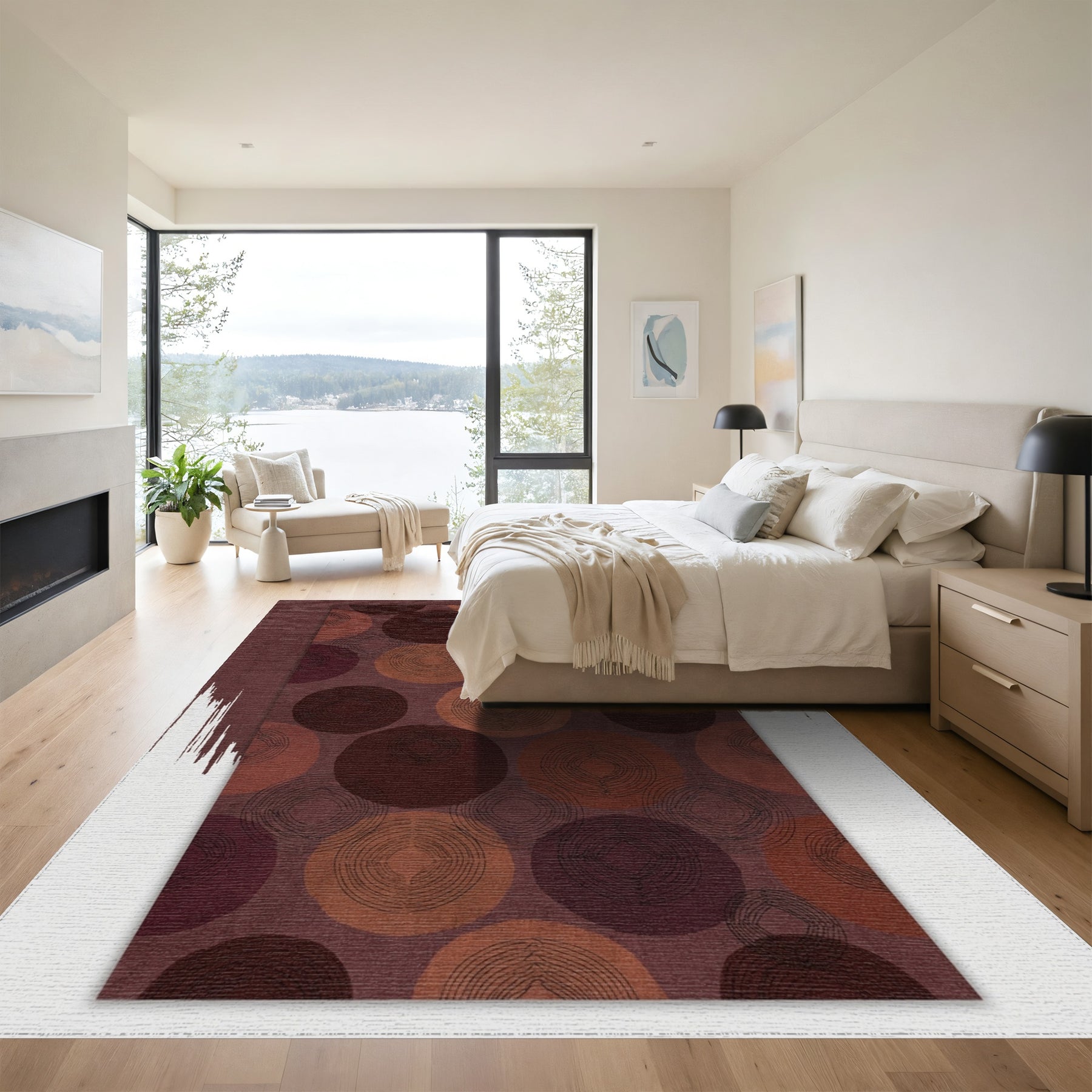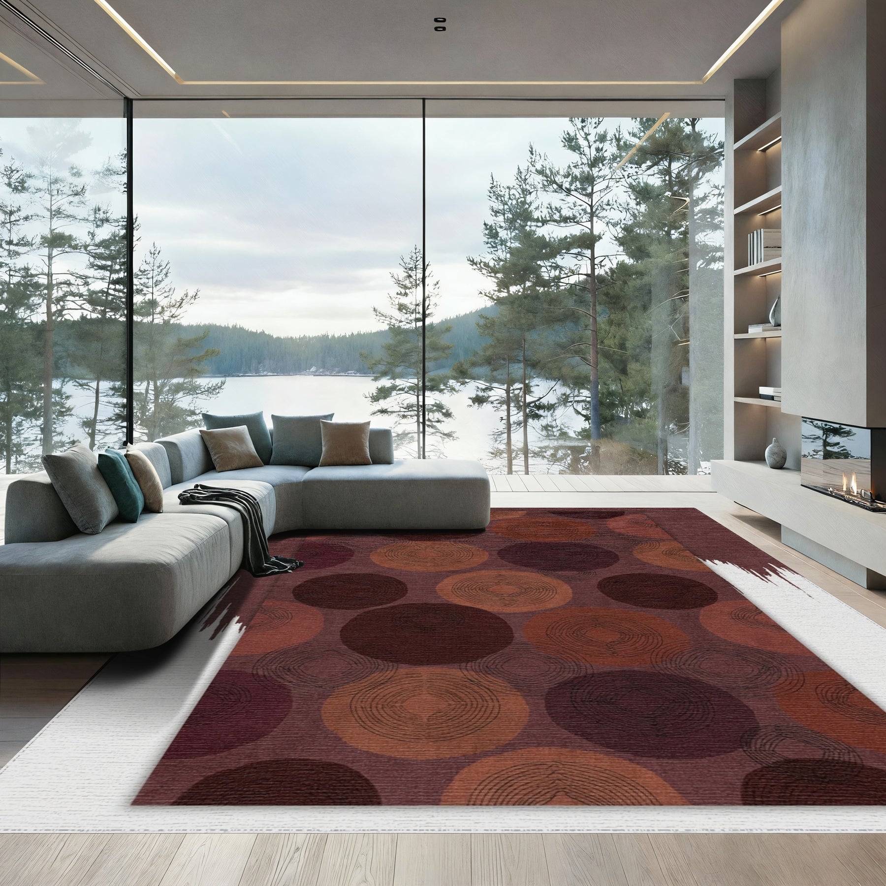 Flatwoven High Traffic Area Rug, Rich Plum Rustic Circles Medallion Rug, Non Slip, Stain Resistant, Washable Area Rugs for Living Room, Bedroom Overview: