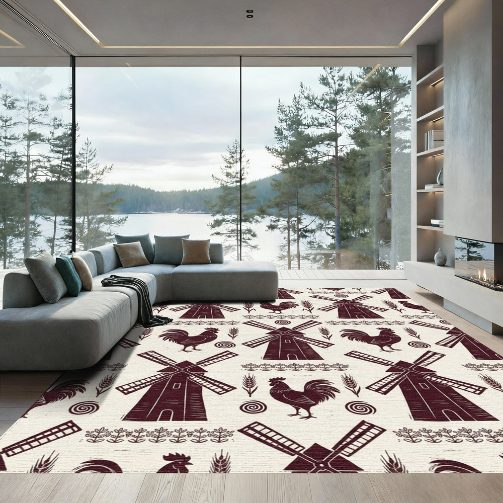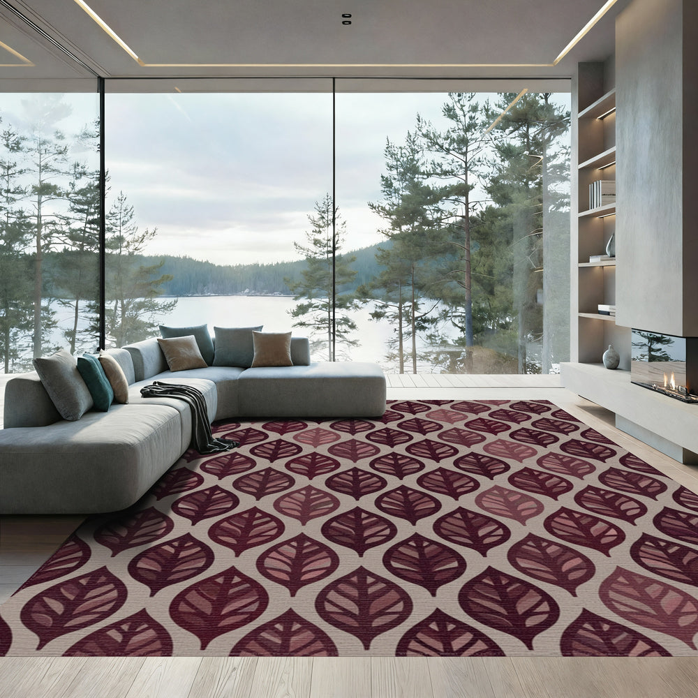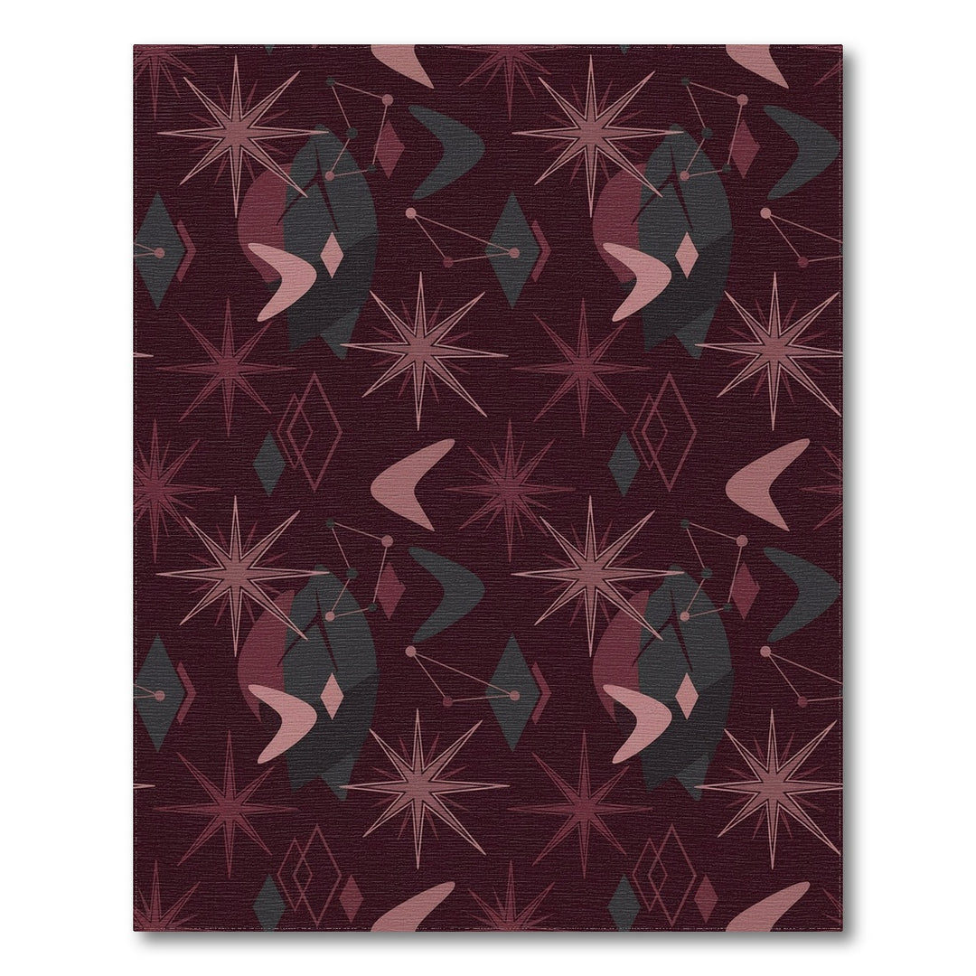 Crimson Starburst Atomic Boomerang Shapes Rug