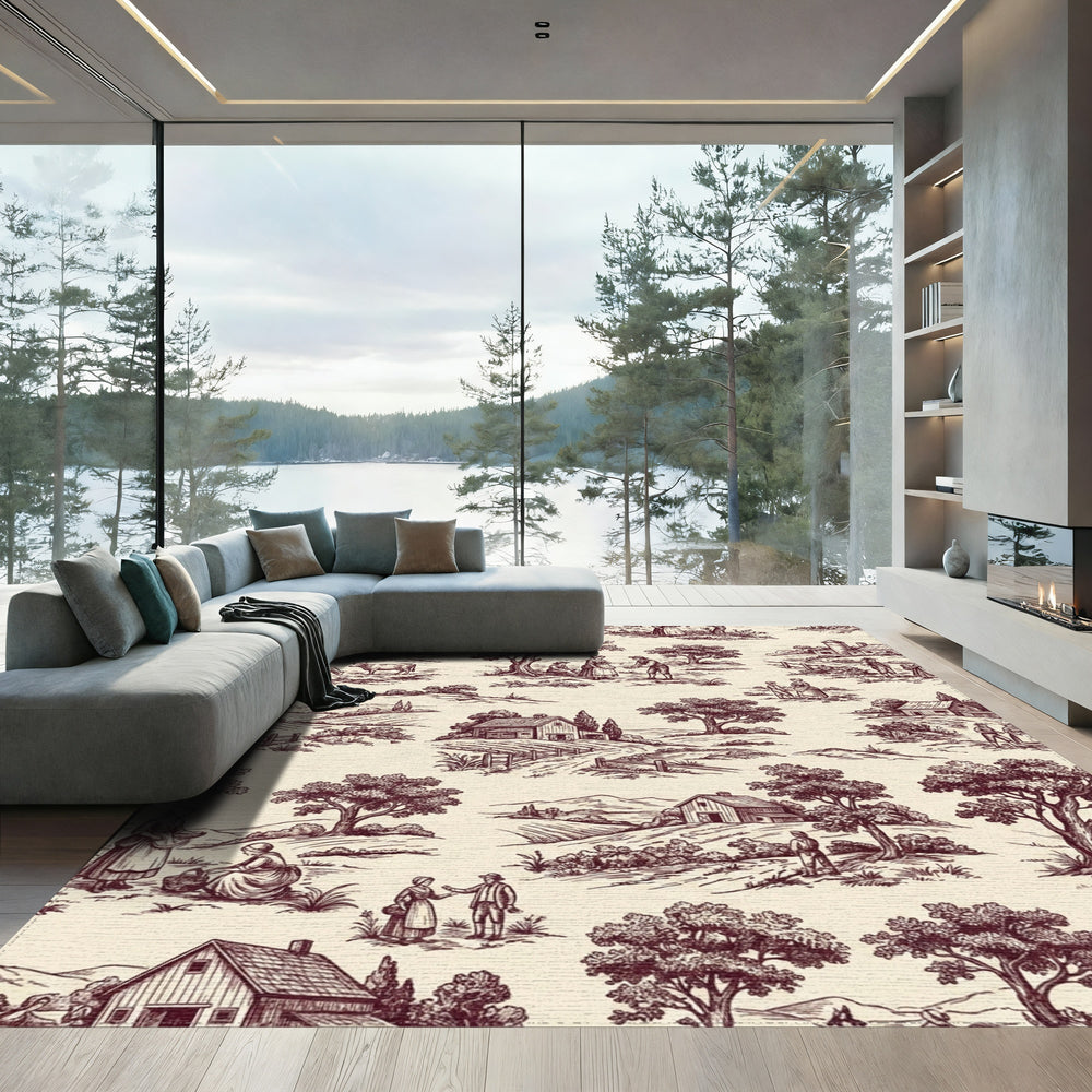 Vintage Rural Landscape Toile Scene Rug