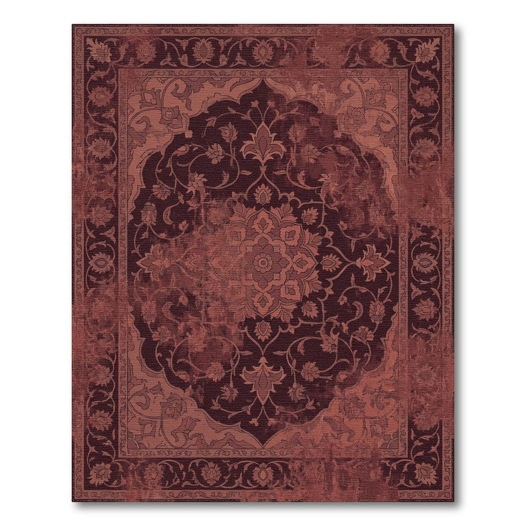 Deep Burgundy Floral Medallion Arabesque Rug