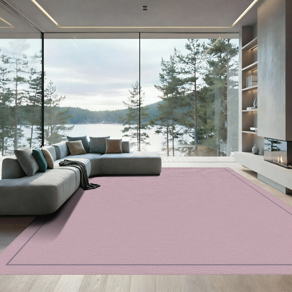 Soft Rose Pink Quatrefoil Border Rug