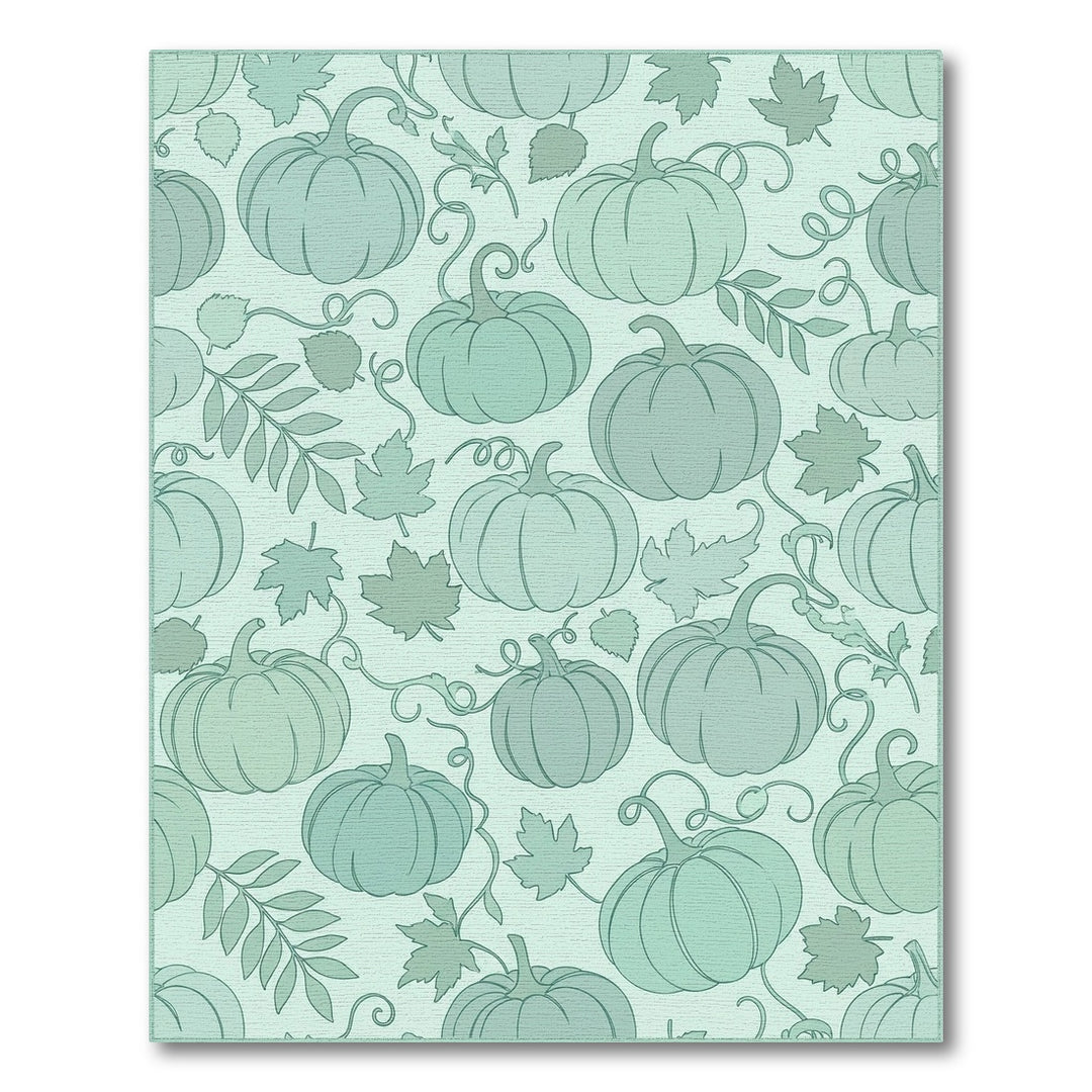 Coastal Teal Pumpkin Autumn Field Rug