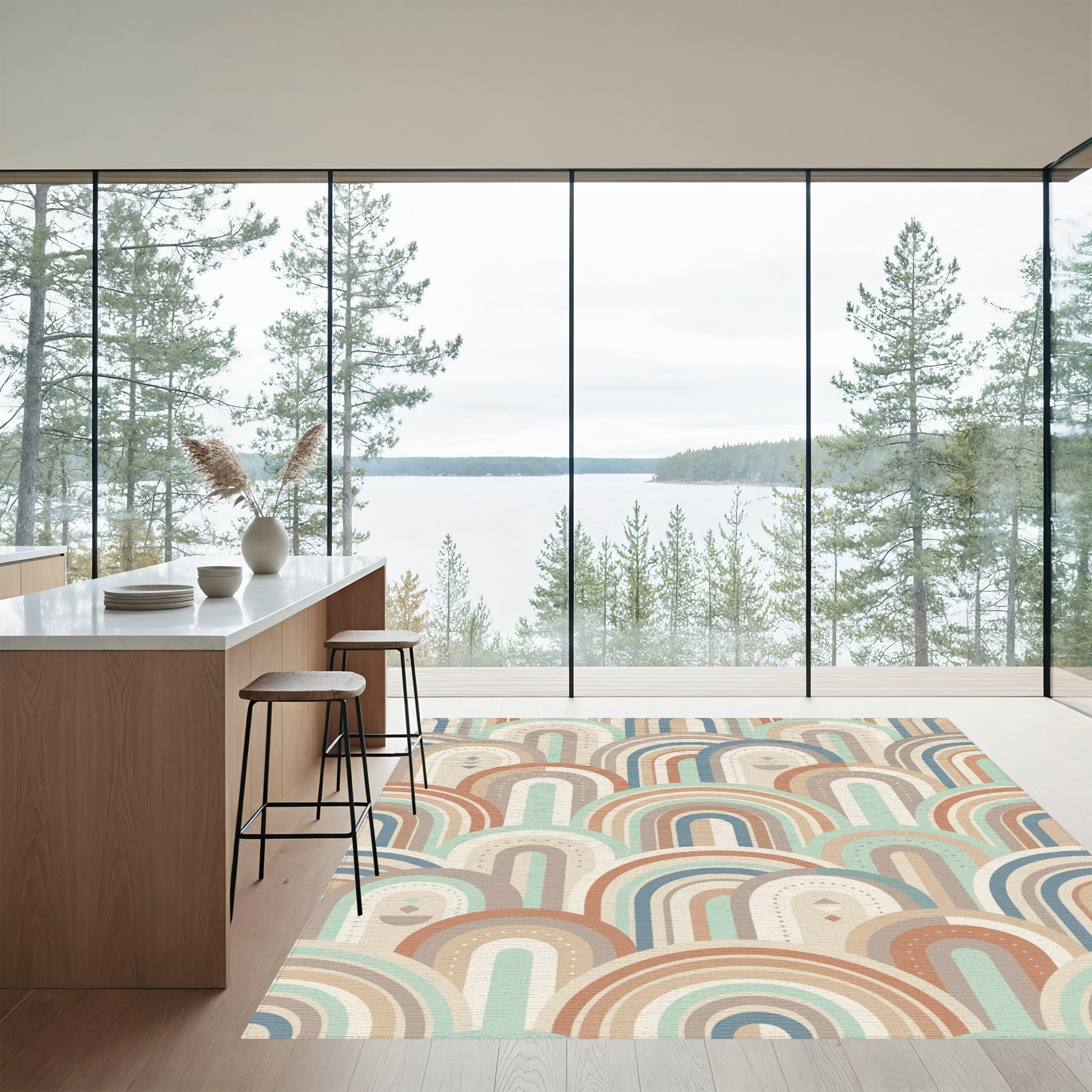 Flatwoven High Traffic Area Rug, Arching Rainbow Stripes Geometric Rug, Non Slip, Stain Resistant, Washable Area Rugs for Living Room, Bedroom Overview: