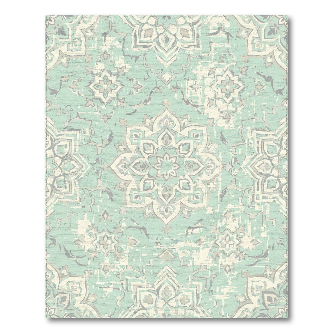 Flatwoven High Traffic Area Rug, Distressed Aqua Medallion Arrangement Rug, Non Slip, Stain Resistant, Washable Area Rugs for Living Room, Bedroom Overview:
