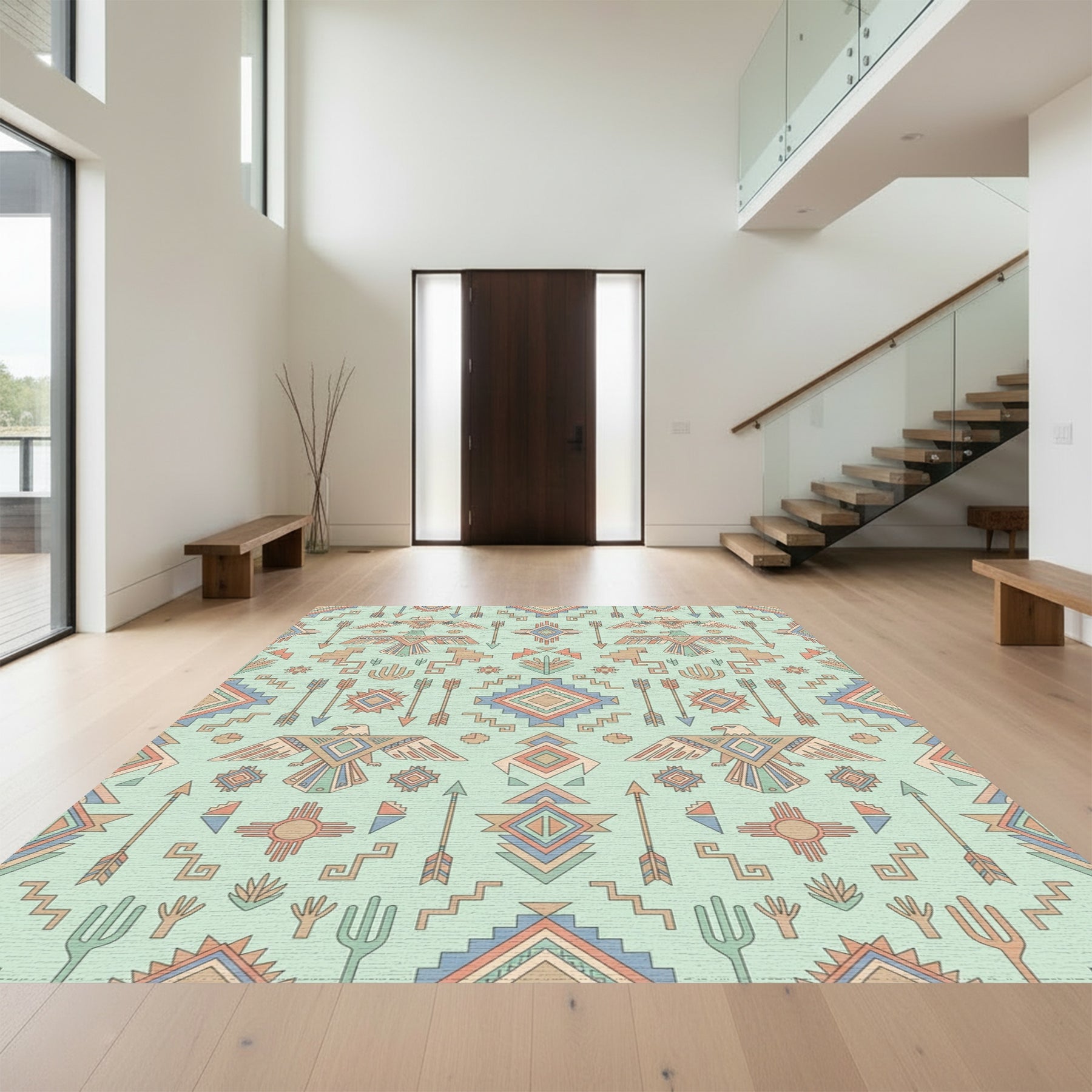 Flatwoven High Traffic Area Rug, Earthy Eagle Arrow Geometric Native Rug, Non Slip, Stain Resistant, Washable Area Rugs for Living Room, Bedroom Overview: