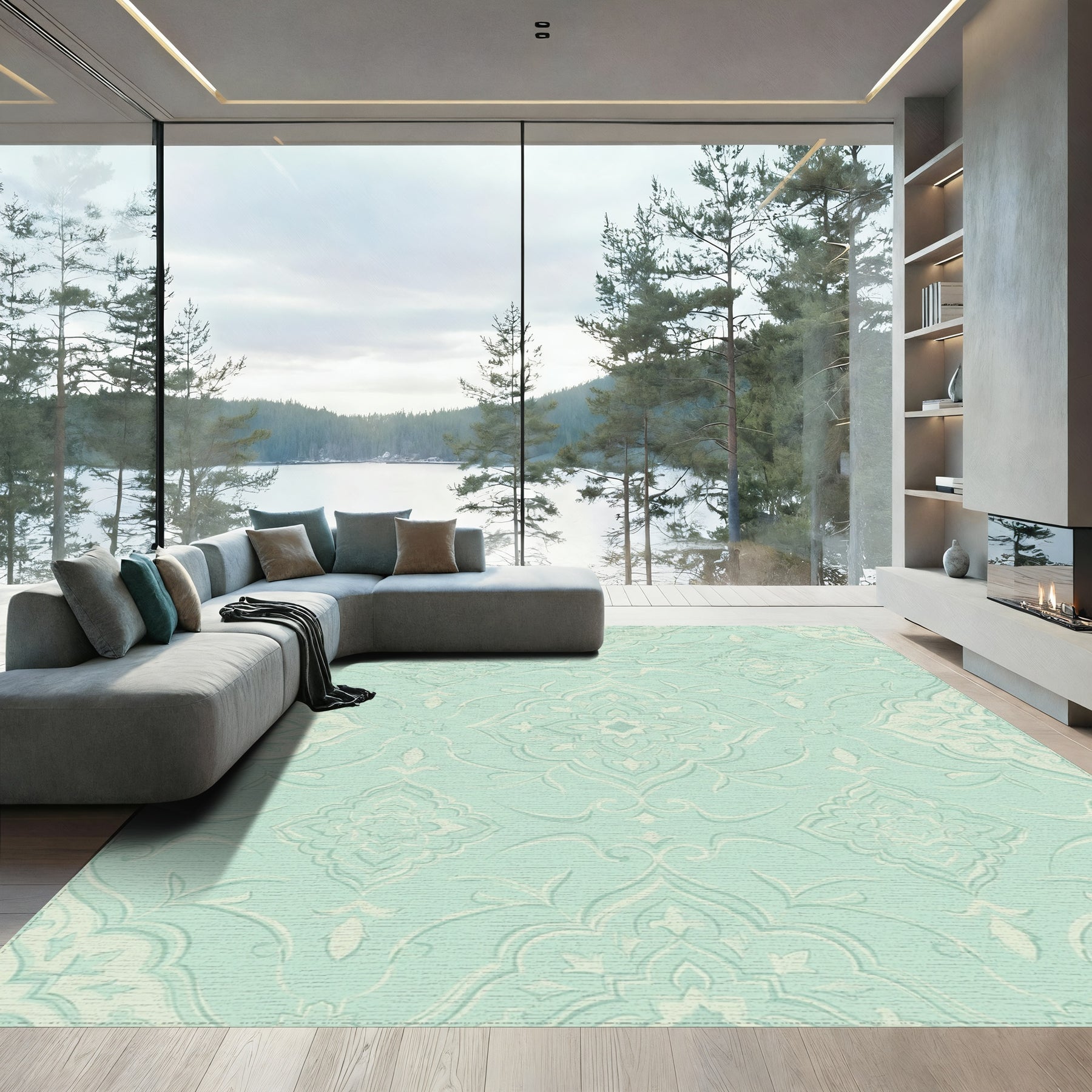 Light Aqua Scroll Medallion Rug