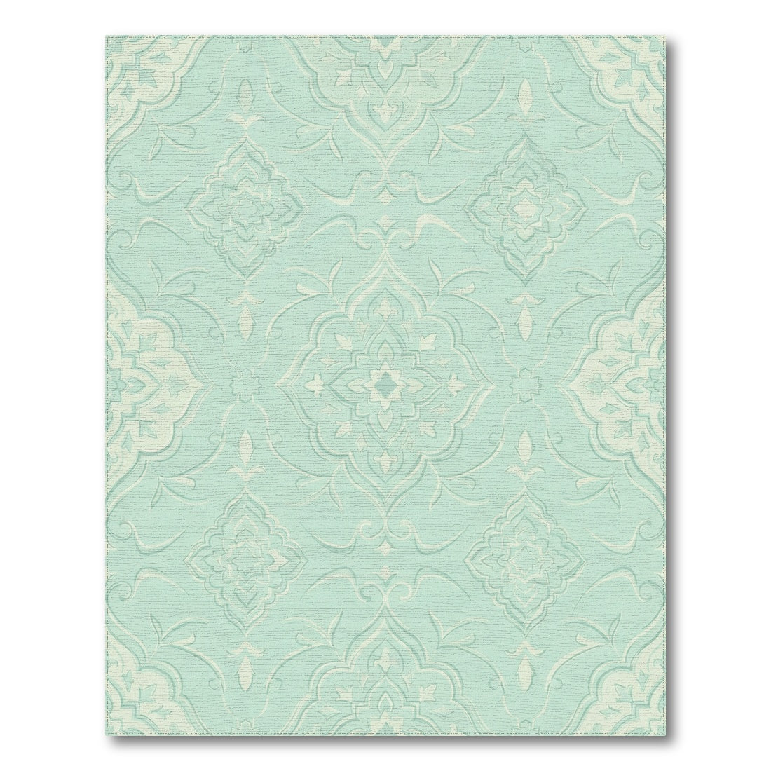 Flatwoven High Traffic Area Rug, Light Aqua Scroll Medallion Rug, Non Slip, Stain Resistant, Washable Area Rugs for Living Room, Bedroom Overview: