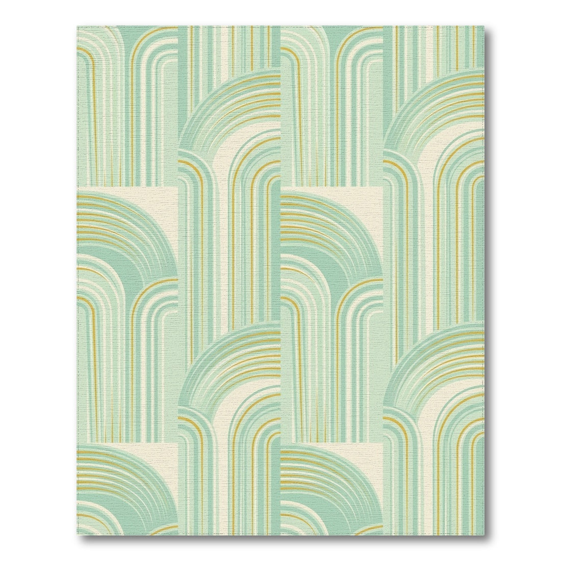 Flatwoven High Traffic Area Rug, Retro Mint Gold Arc Segment Rug, Non Slip, Stain Resistant, Washable Area Rugs for Living Room, Bedroom Overview: