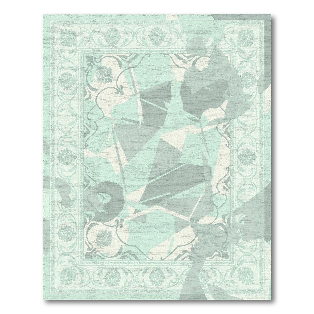 Flatwoven High Traffic Area Rug, Soft Mint Floral Border Geometric Blend Rug, Non Slip, Stain Resistant, Washable Area Rugs for Living Room, Bedroom Overview: