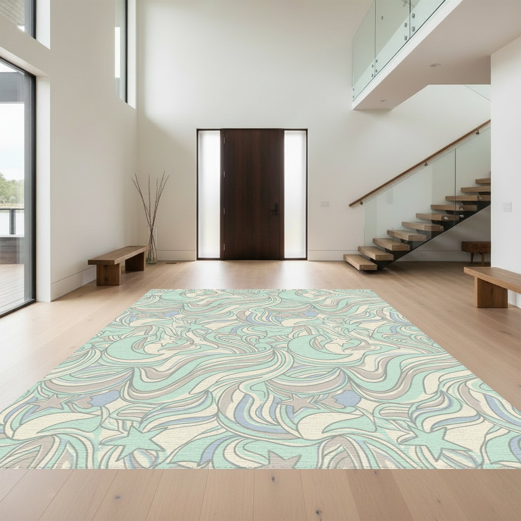 Flatwoven High Traffic Area Rug, Whimsical Pastel Moon Star Swirl Rug, Non Slip, Stain Resistant, Washable Area Rugs for Living Room, Bedroom Overview: