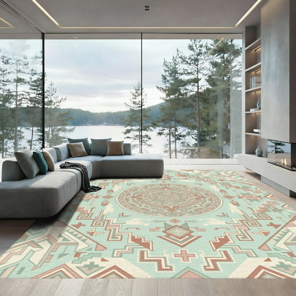 Ancient Sun Calendar Geometric Medallion Rug