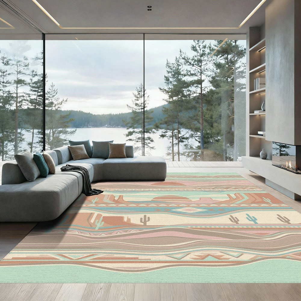 Southwestern Desert Landscape Sun Cacti Rug
