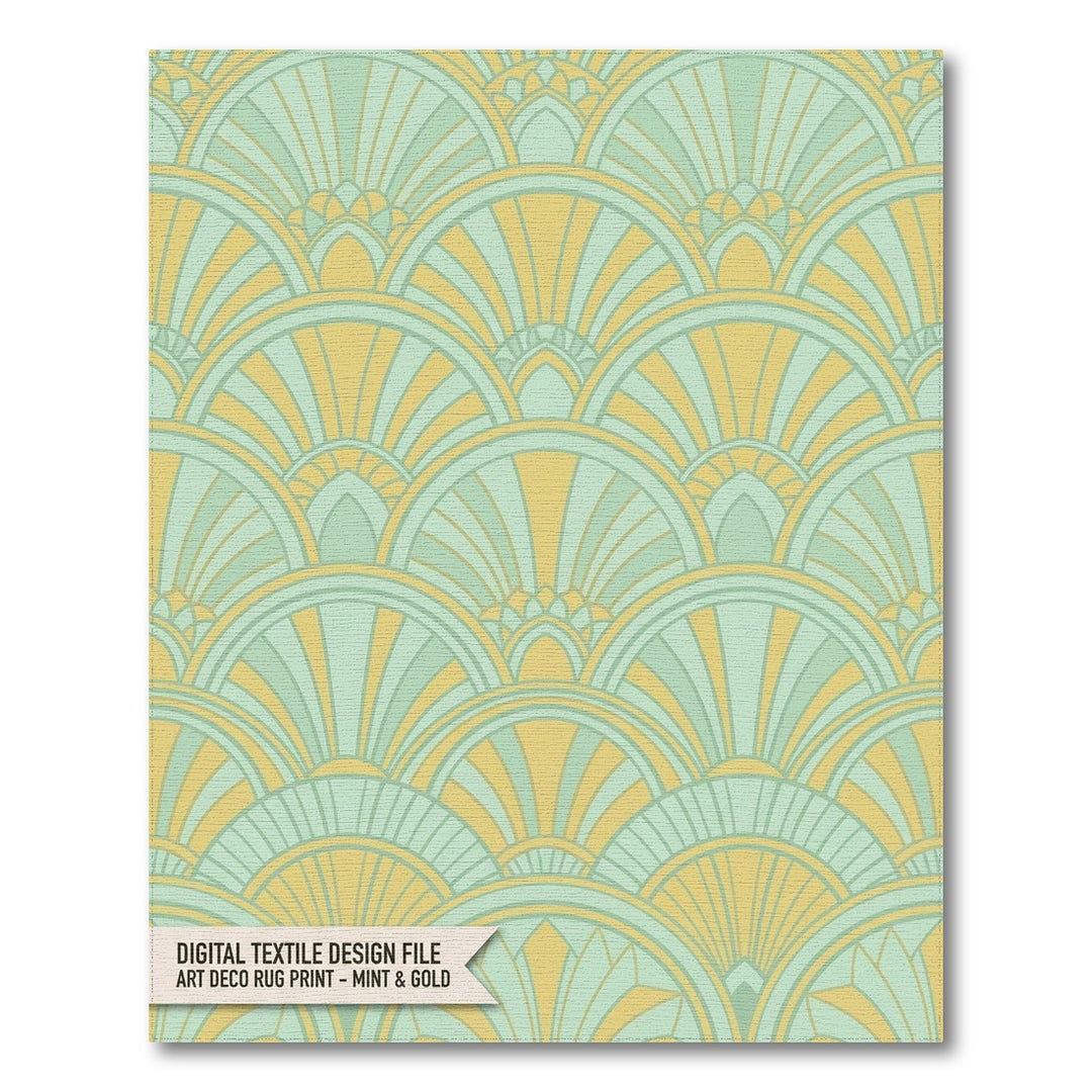 Art Deco Fan Mint Gold Rug