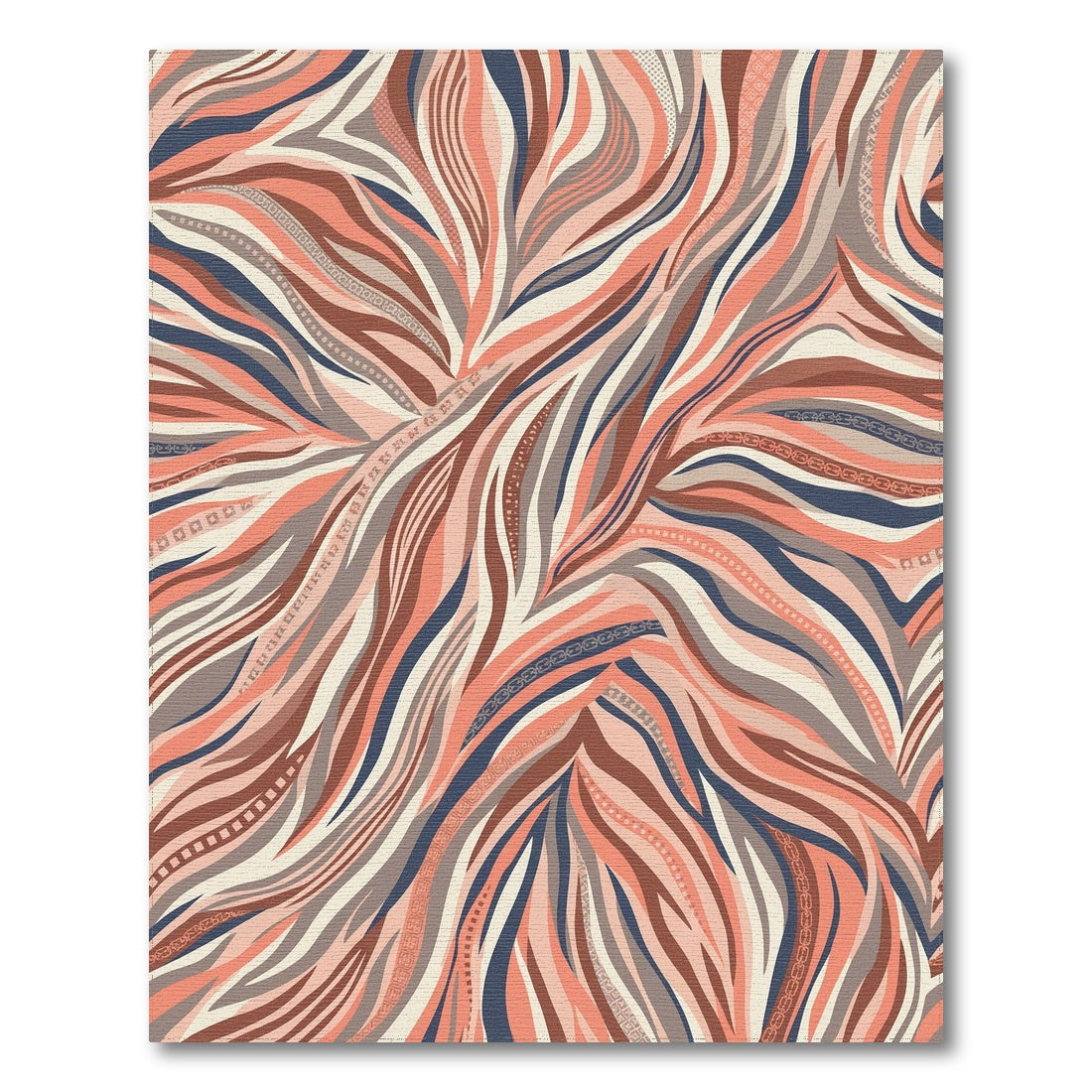 Flatwoven High Traffic Area Rug, Coral and Navy Waves Rug, Non Slip, Stain Resistant, Washable Area Rugs for Living Room, Bedroom Overview: