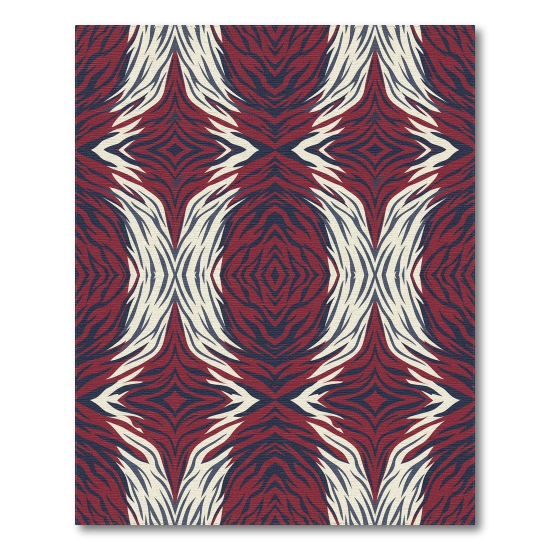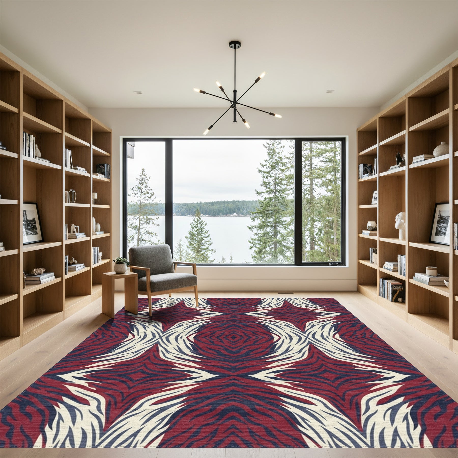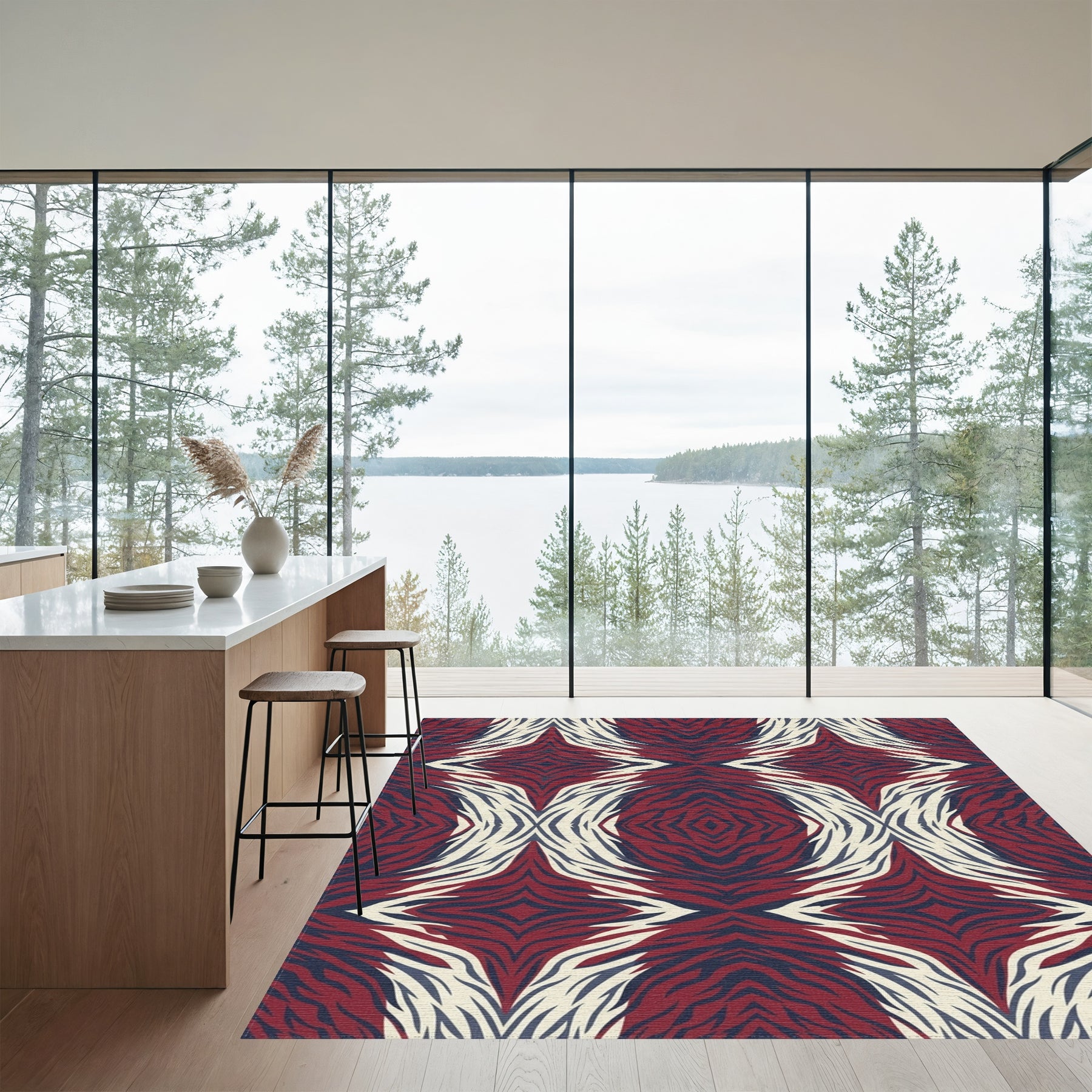 Flatwoven High Traffic Area Rug, Deep Red Blue White Zebra Stripes Rug, Non Slip, Stain Resistant, Washable Area Rugs for Living Room, Bedroom Overview: