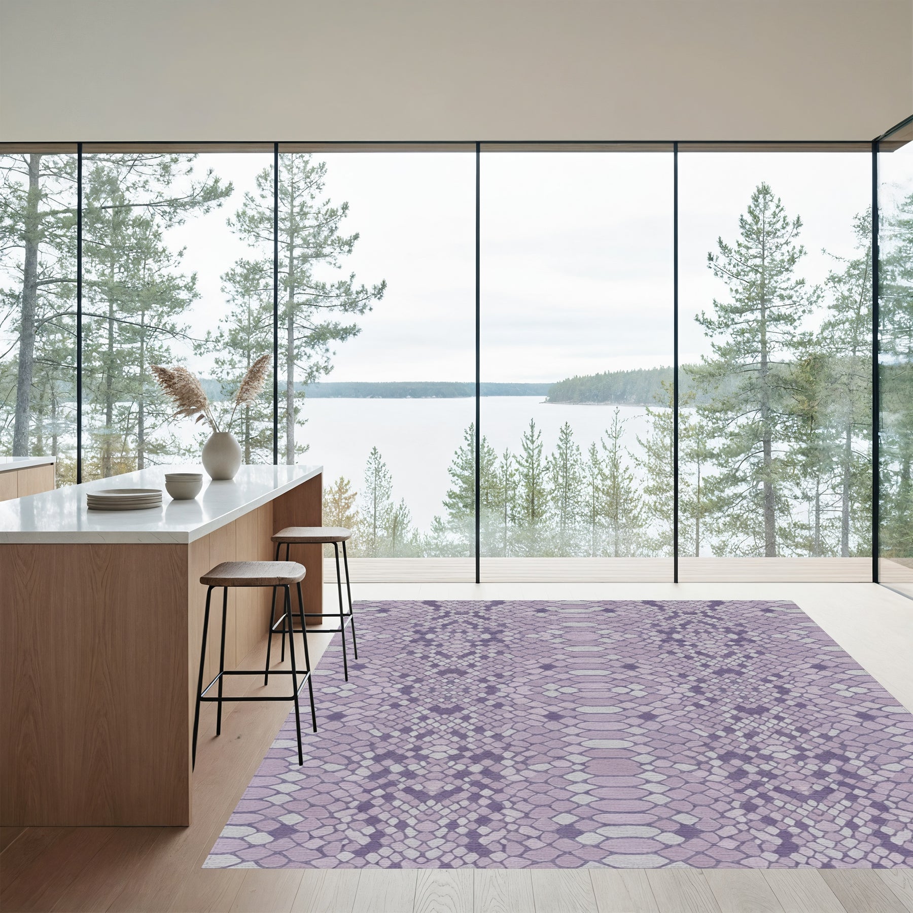 Flatwoven High Traffic Area Rug, Lavender Snake Skin Scales Rug, Non Slip, Stain Resistant, Washable Area Rugs for Living Room, Bedroom Overview: