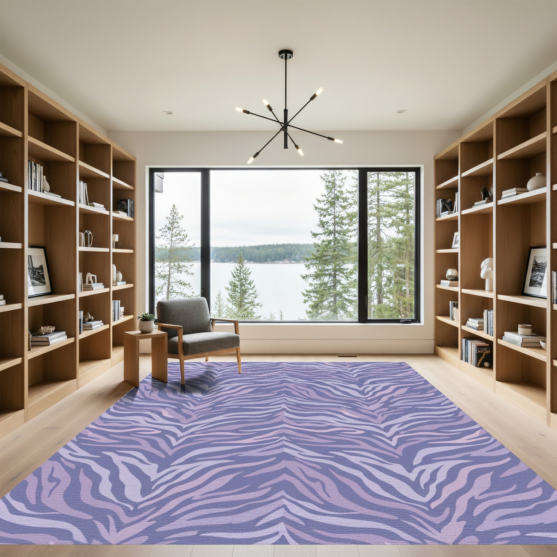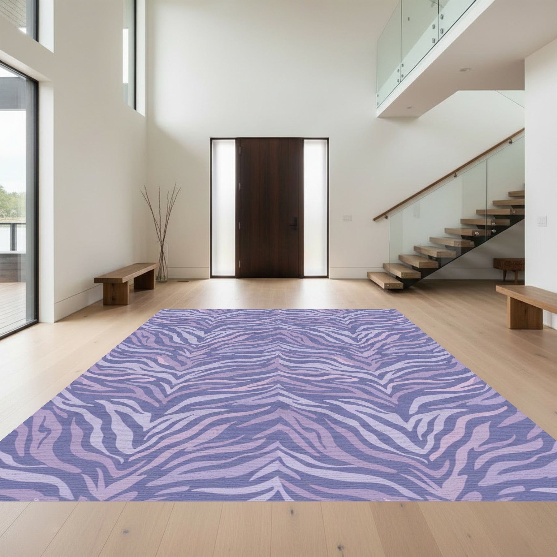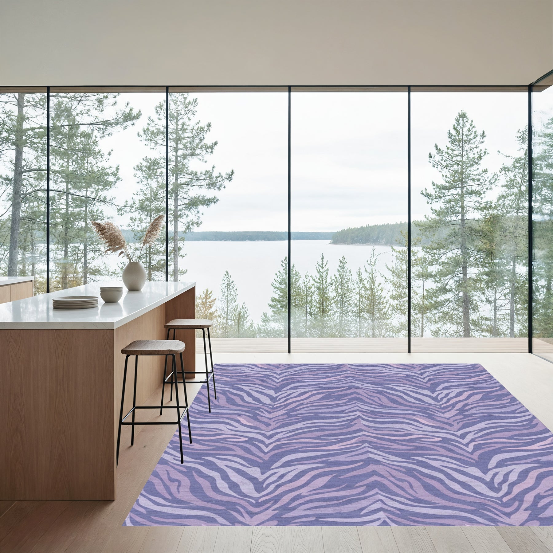 Flatwoven High Traffic Area Rug, Wavy Lavender Zebra Stripes Rug, Non Slip, Stain Resistant, Washable Area Rugs for Living Room, Bedroom Overview: