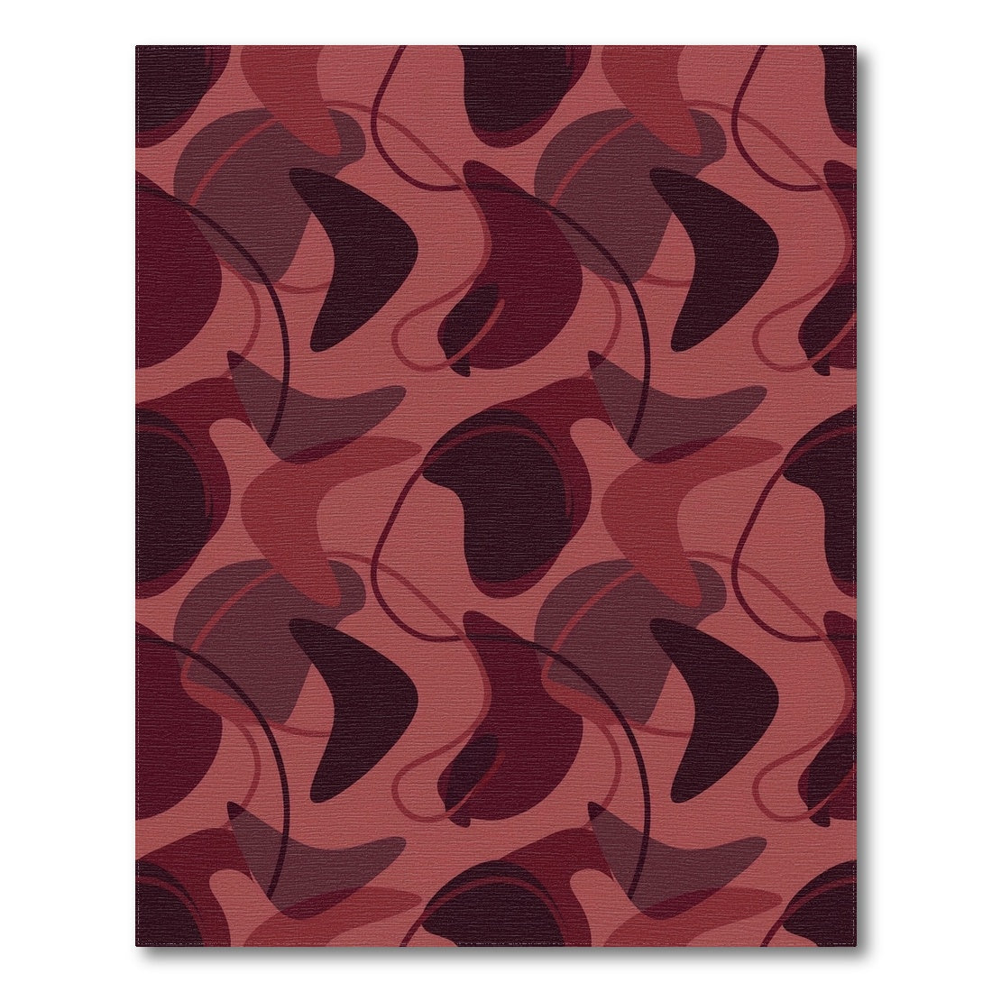 Flatwoven High Traffic Area Rug, Chic Burgundy Mid Century Modern Forms Rug, Non Slip, Stain Resistant, Washable Area Rugs for Living Room, Bedroom Overview: