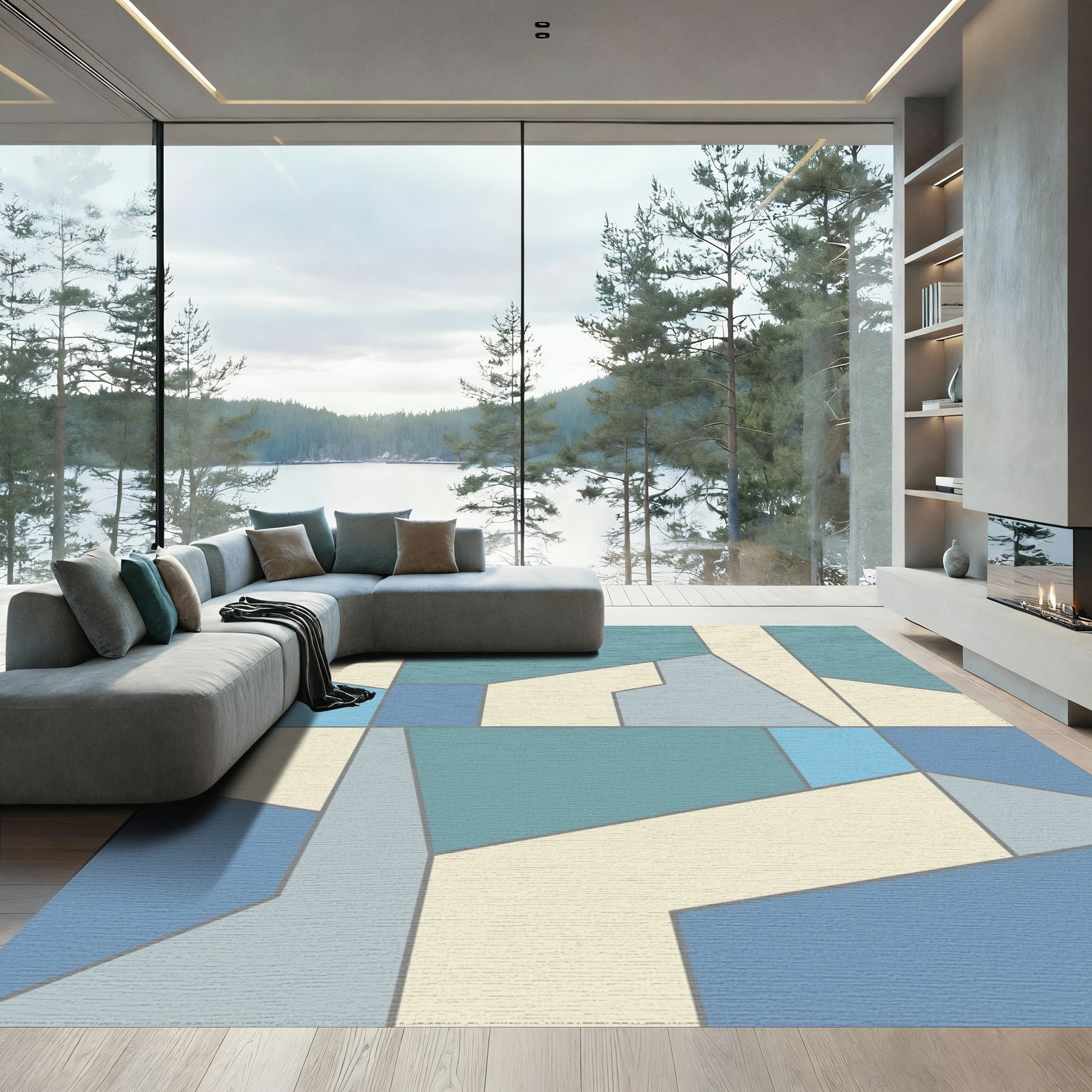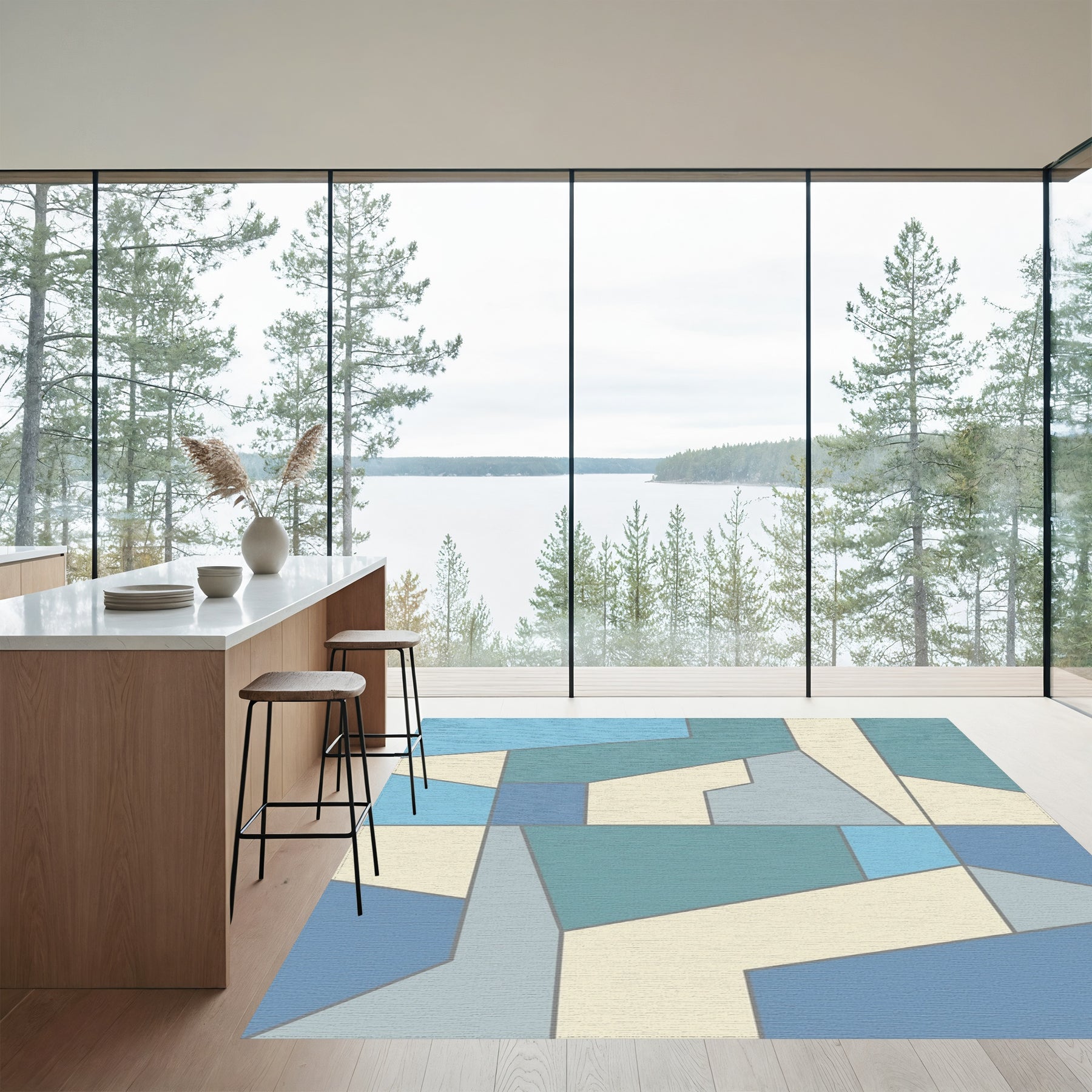 Flatwoven High Traffic Area Rug, Cool Geometric Abstract Forms Rug, Non Slip, Stain Resistant, Washable Area Rugs for Living Room, Bedroom Overview:
