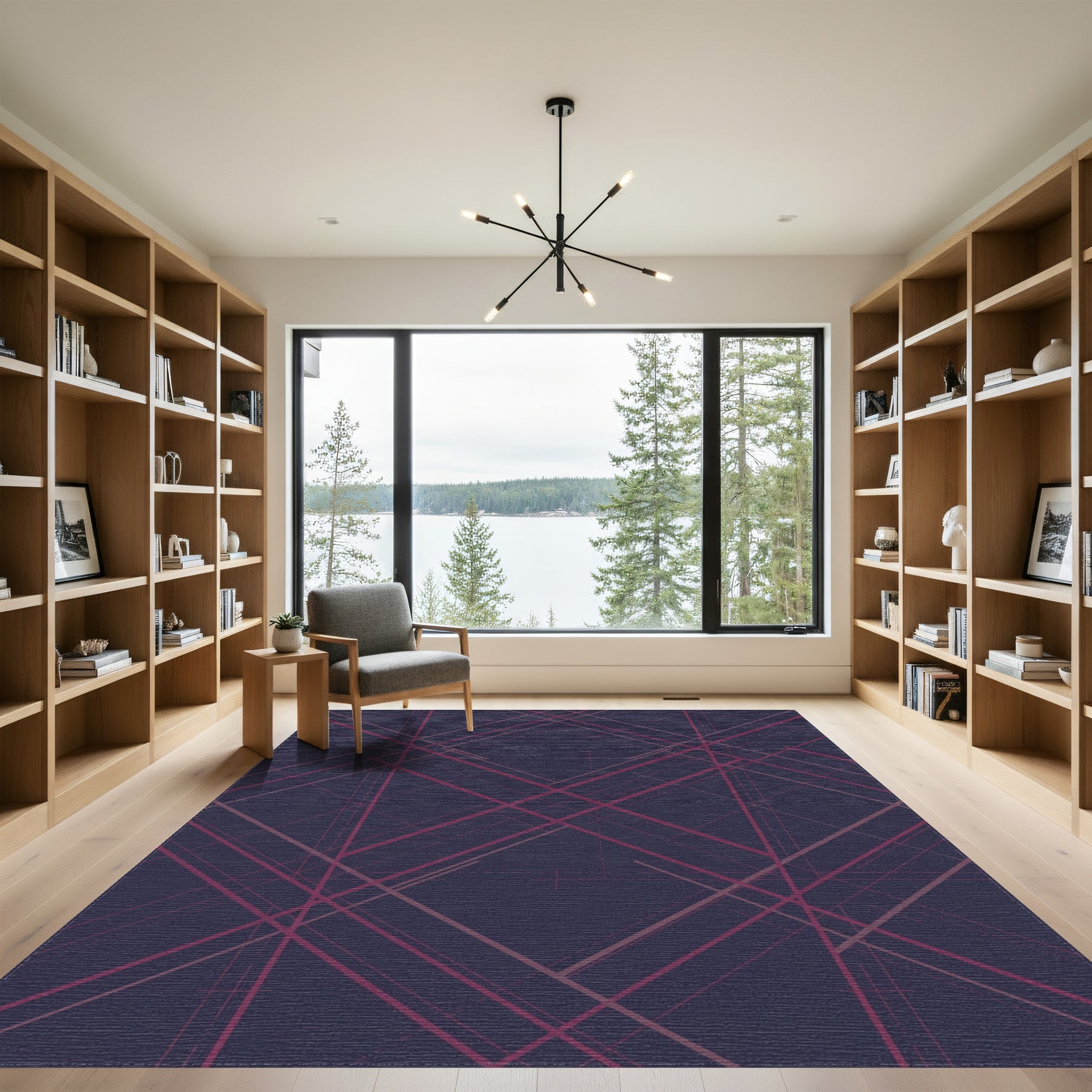 Flatwoven High Traffic Area Rug, Deep Plum Intersecting Lines Rug, Non Slip, Stain Resistant, Washable Area Rugs for Living Room, Bedroom Overview: