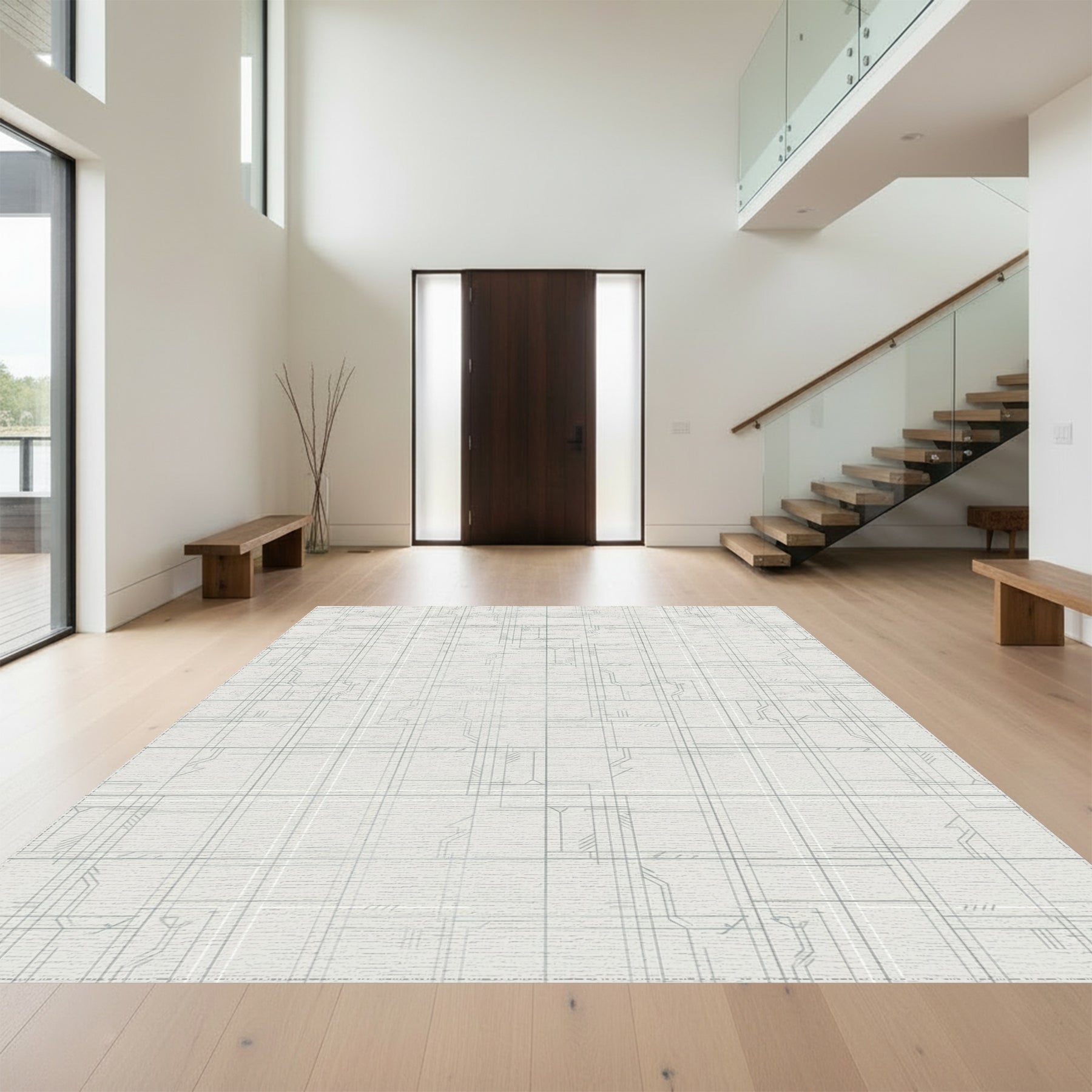 Flatwoven High Traffic Area Rug, Minimalist Geometric Circuitry Grid Rug, Non Slip, Stain Resistant, Washable Area Rugs for Living Room, Bedroom Overview: