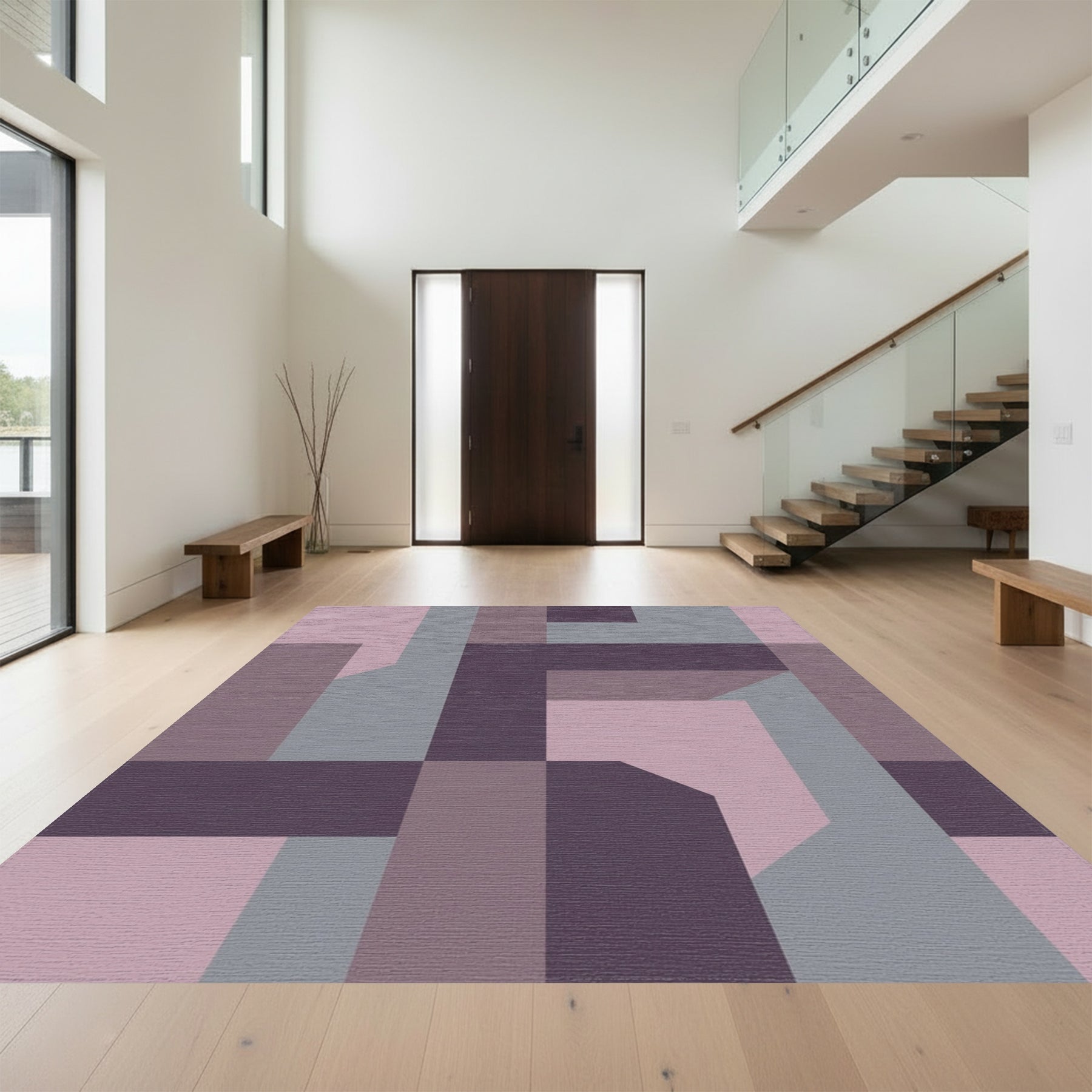 Flatwoven High Traffic Area Rug, Pastel Purple Geometric Blocks Rug, Non Slip, Stain Resistant, Washable Area Rugs for Living Room, Bedroom Overview: