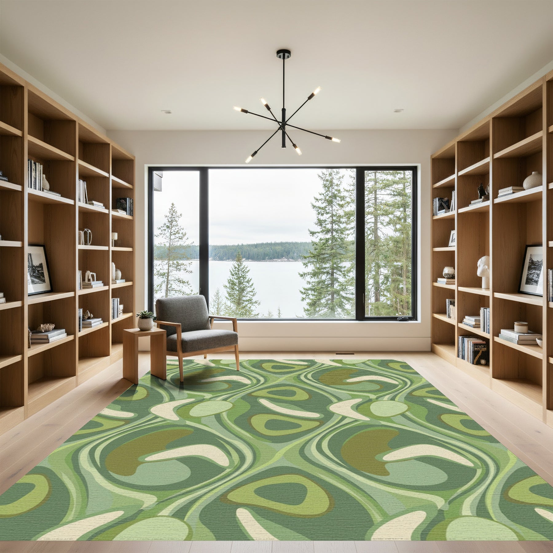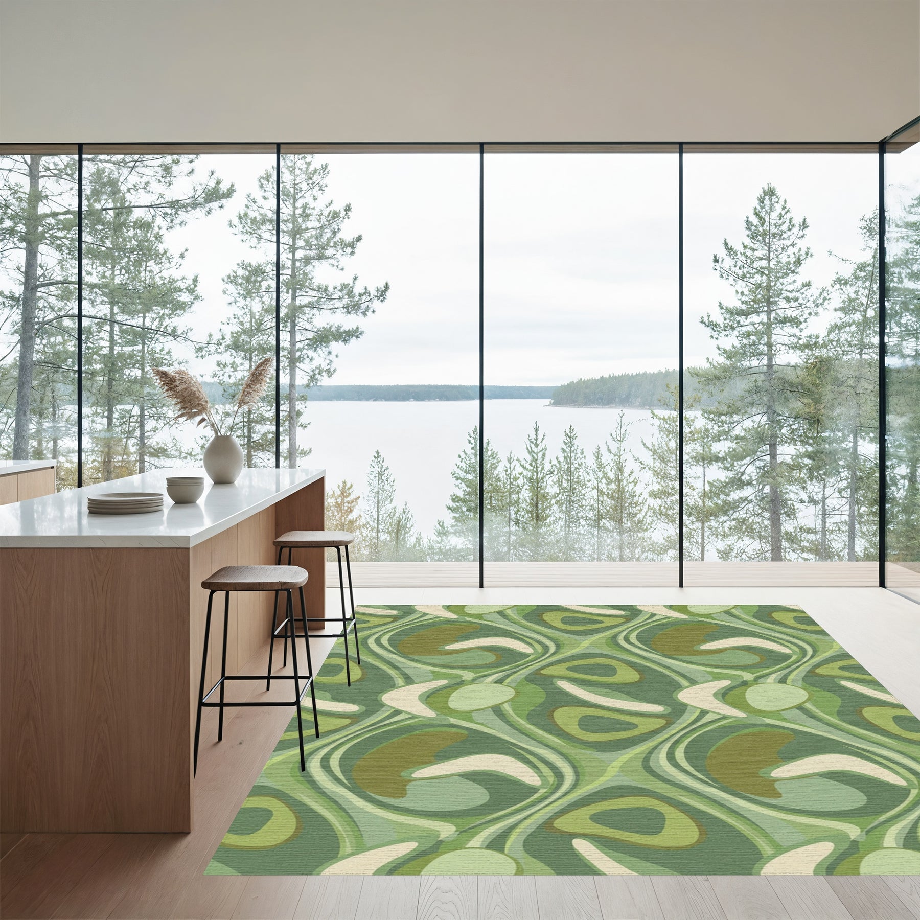 Flatwoven High Traffic Area Rug, Retro Green Abstract Swirl Rug, Non Slip, Stain Resistant, Washable Area Rugs for Living Room, Bedroom Overview: