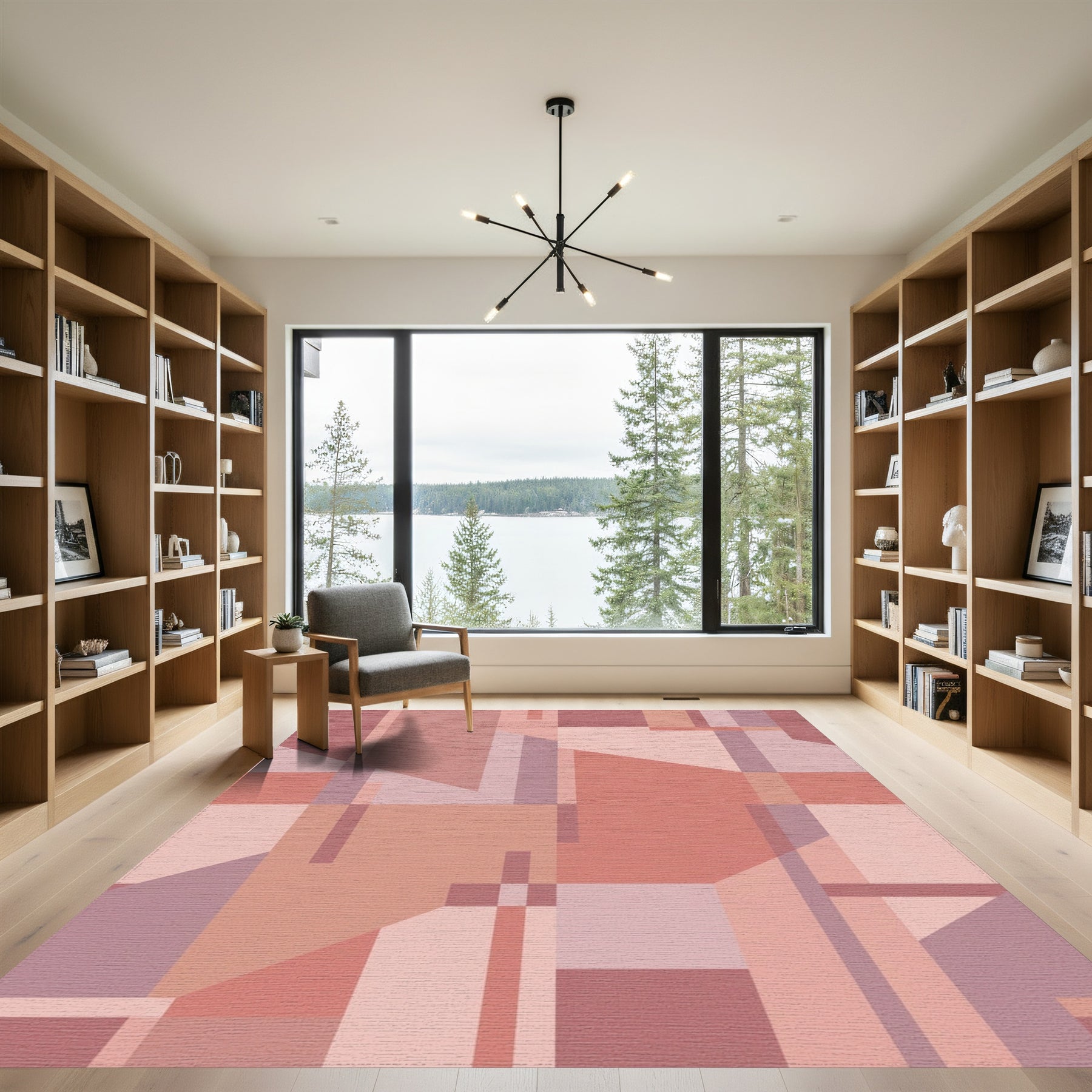Flatwoven High Traffic Area Rug, Rose Geometric Abstract Blocks Rug, Non Slip, Stain Resistant, Washable Area Rugs for Living Room, Bedroom Overview: