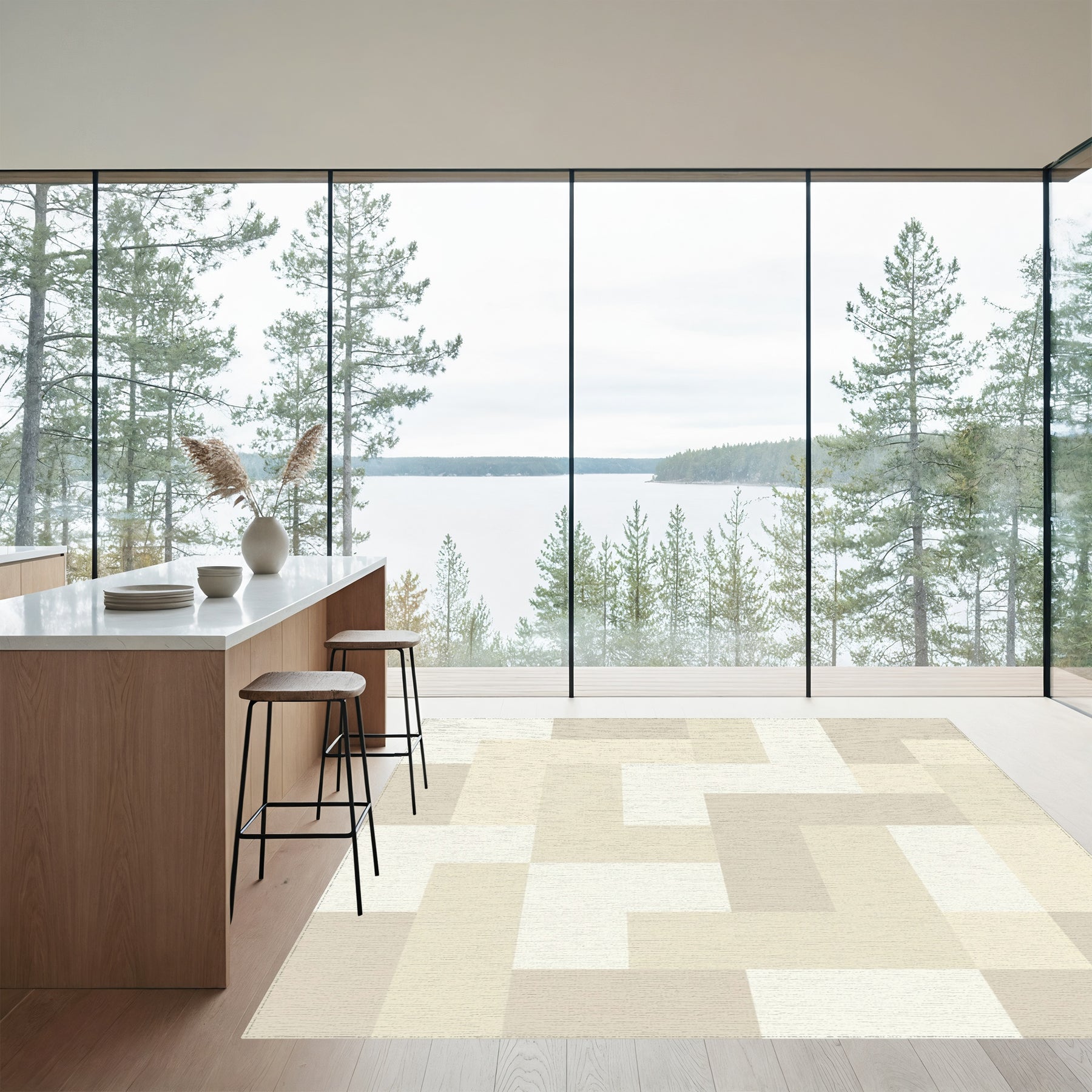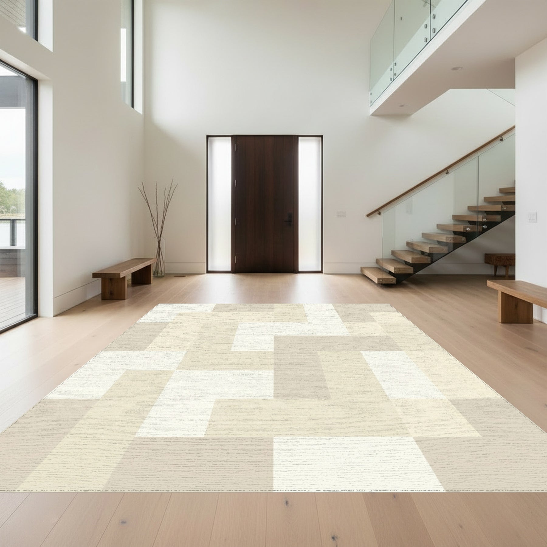 Flatwoven High Traffic Area Rug, Subtle Beige Geometric Interlock Blocks Rug, Non Slip, Stain Resistant, Washable Area Rugs for Living Room, Bedroom Overview: