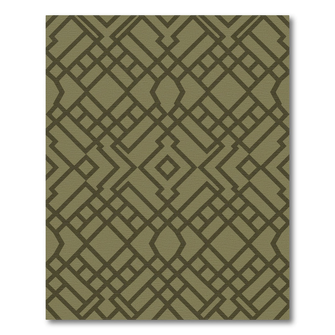 Olive Green Interlocking Geometric Lattice Rug