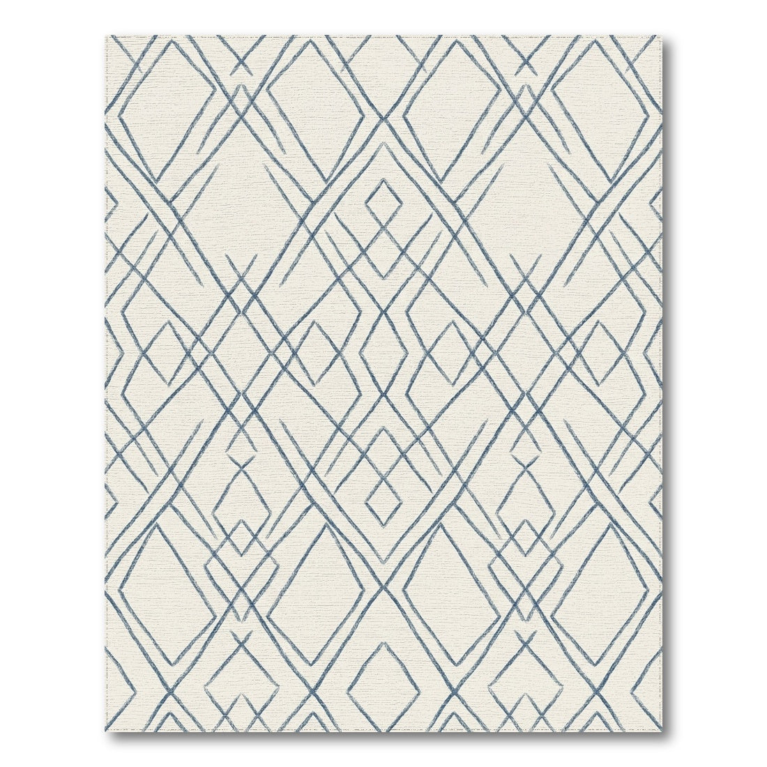 Flatwoven High Traffic Area Rug, Blue Chalky Diamond Net Rug, Non Slip, Stain Resistant, Washable Area Rugs for Living Room, Bedroom Overview: