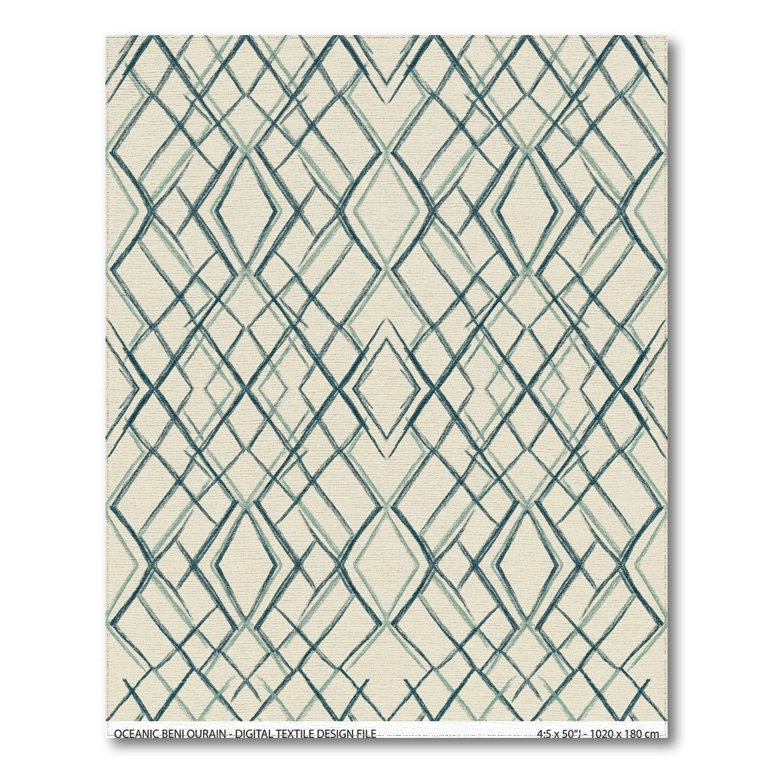 Flatwoven High Traffic Area Rug, Coastal Blue Diamond Lattice Rug, Non Slip, Stain Resistant, Washable Area Rugs for Living Room, Bedroom Overview: