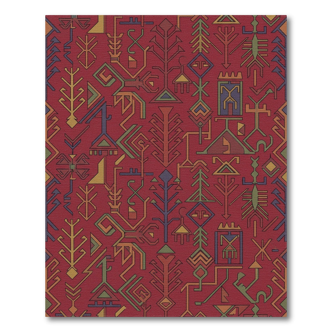 Flatwoven High Traffic Area Rug, Global Red Line Abstract Folk Art Rug, Non Slip, Stain Resistant, Washable Area Rugs for Living Room, Bedroom Overview: