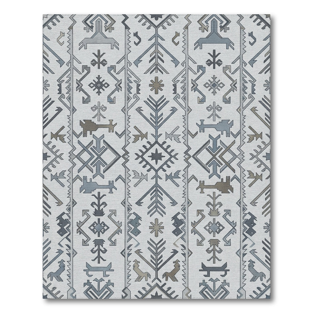 Gray Blue Tribal Band Geometric Rug