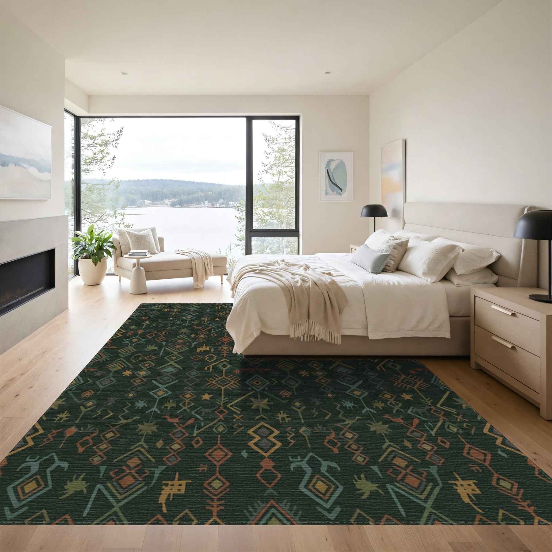 Flatwoven High Traffic Area Rug, Muted Earth Tones Tribal Geometric Rug, Non Slip, Stain Resistant, Washable Area Rugs for Living Room, Bedroom Overview: