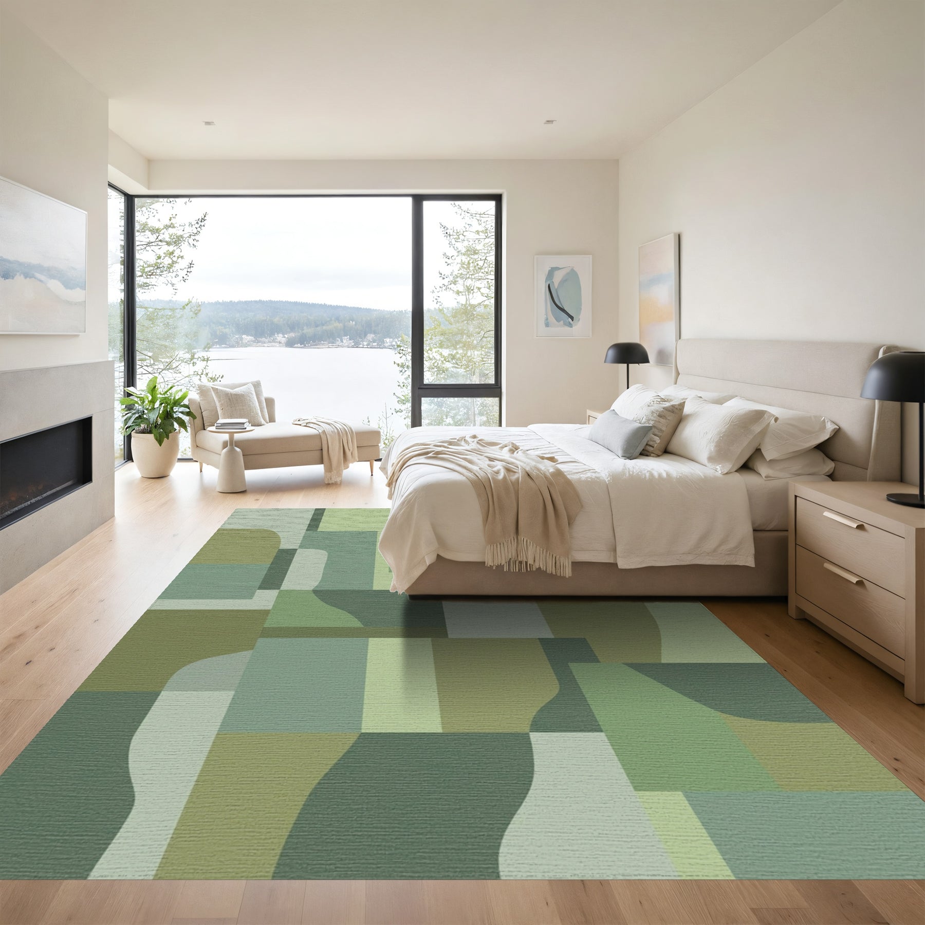• Modern, artistic: Add a piece of modern charm to your bedroom collection. Designed with the art of minimalism, this rug is sure to provide your bedroom with coziness.