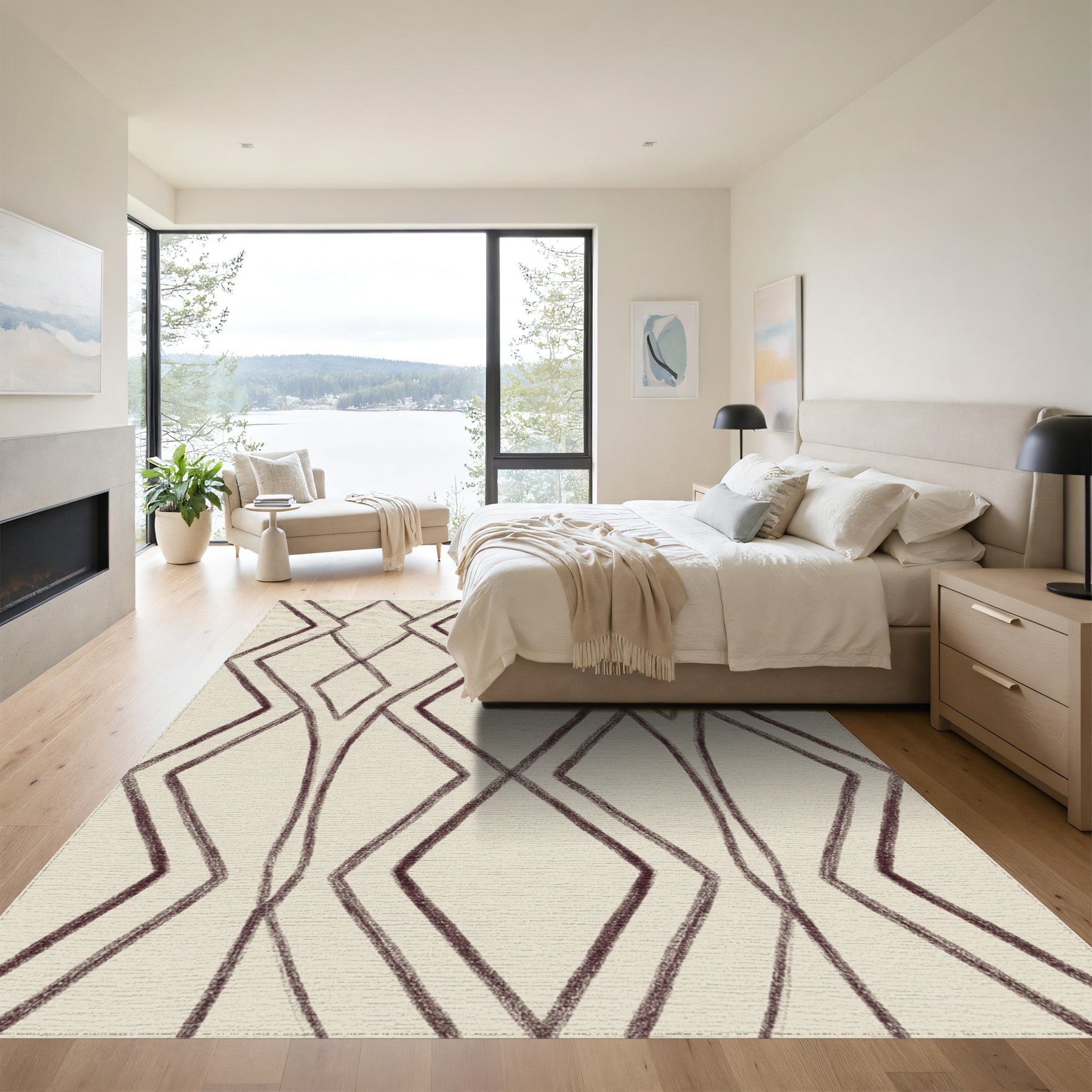 Flatwoven High Traffic Area Rug, Rustic Plum Diamond Chain Rug, Non Slip, Stain Resistant, Washable Area Rugs for Living Room, Bedroom Overview:
