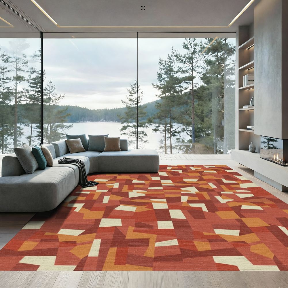 Earthy Terracotta Abstract Geometric Mosaic Rug