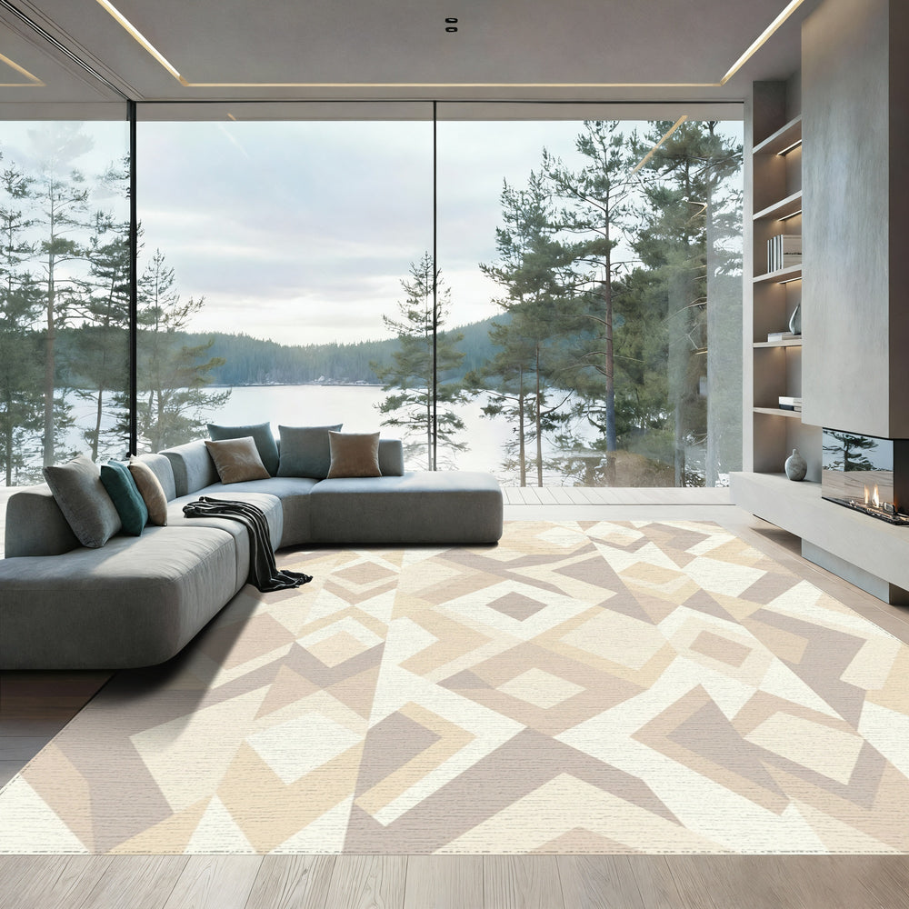 Soft Earthy Tone Geometric Diamond Rug
