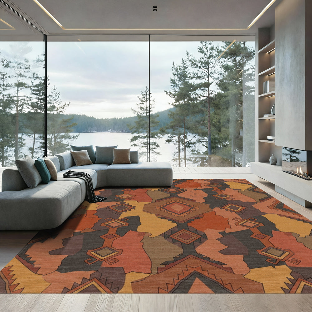 Terracotta Earth Tone Geometric Fragments Rug