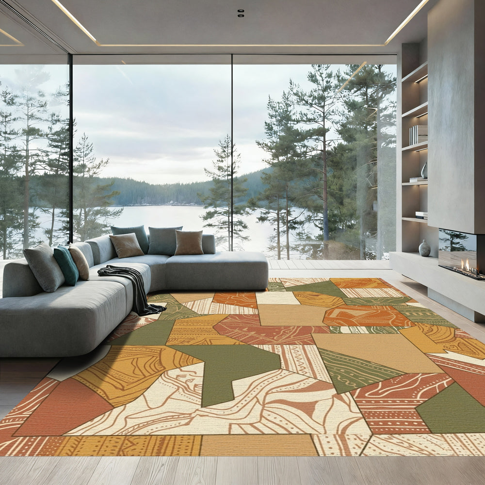Earthy Geometric Fragment Collage Rug