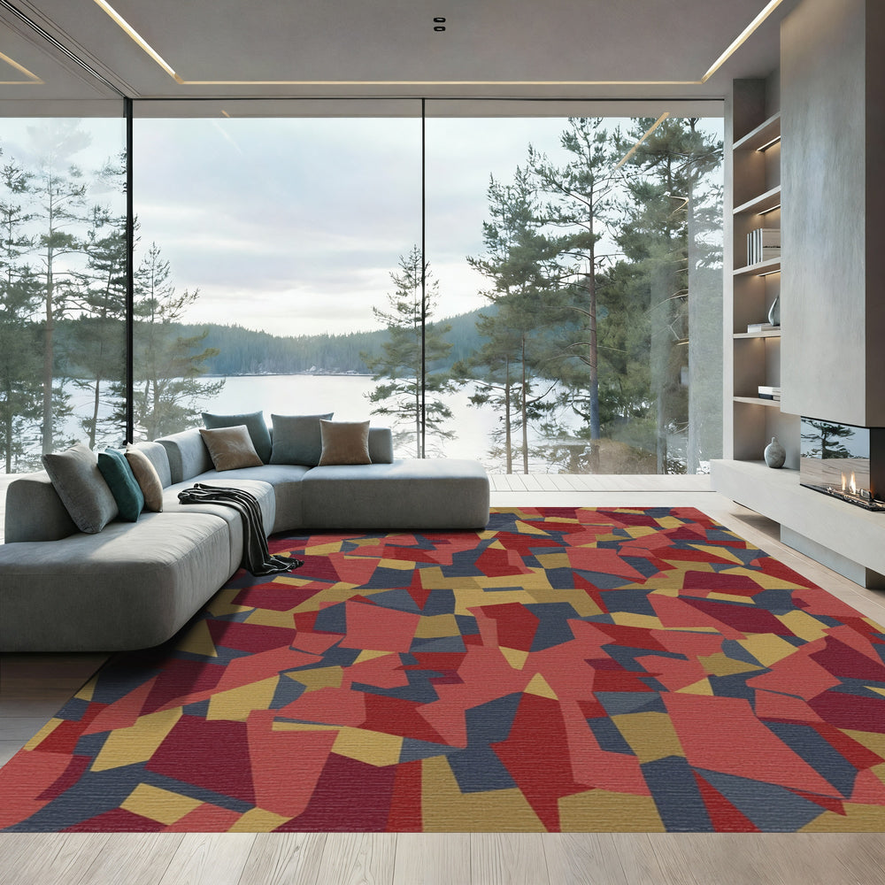 Crimson Gold Slate Abstract Terracotta Rug