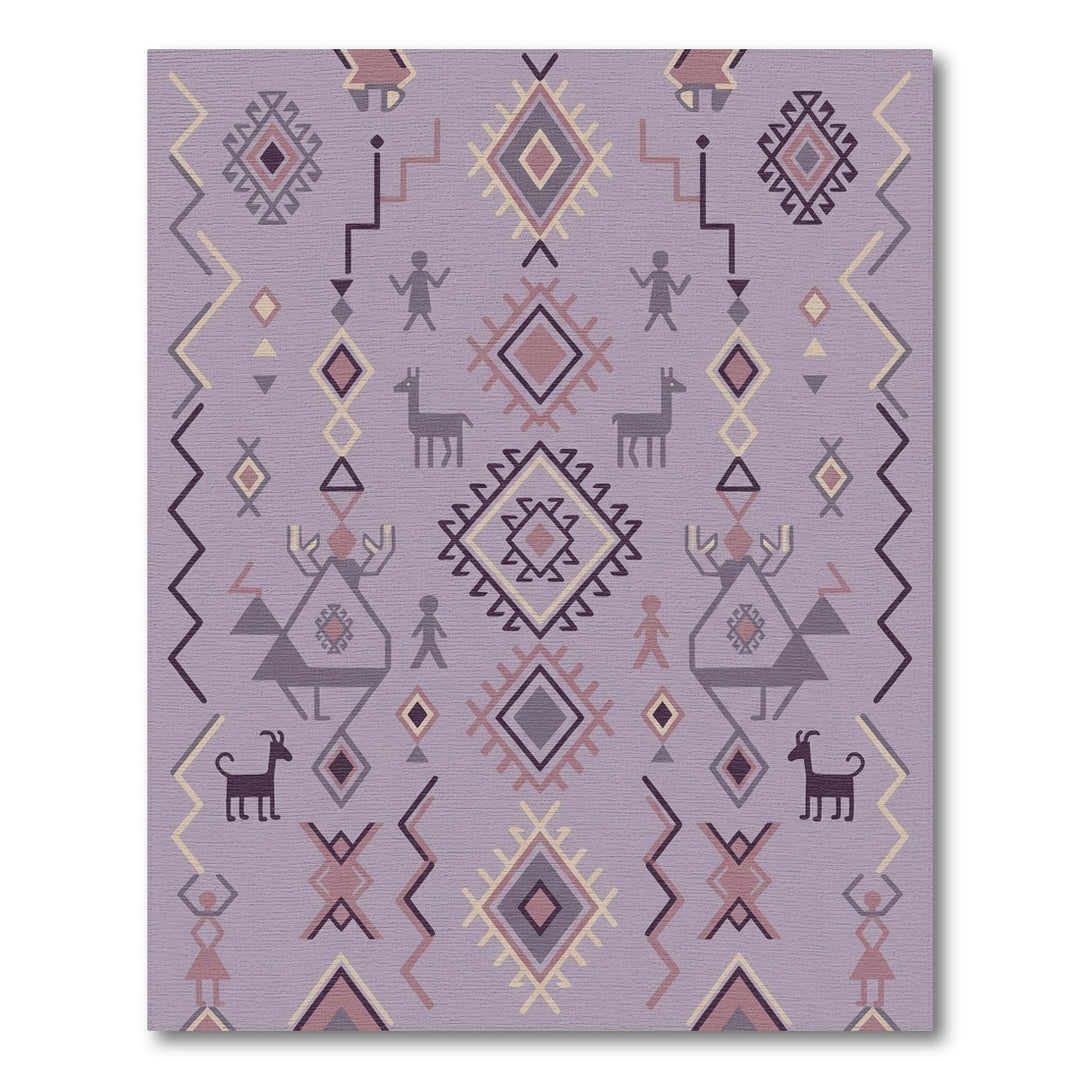 Lavender And Crimson Tribal Figures Rug