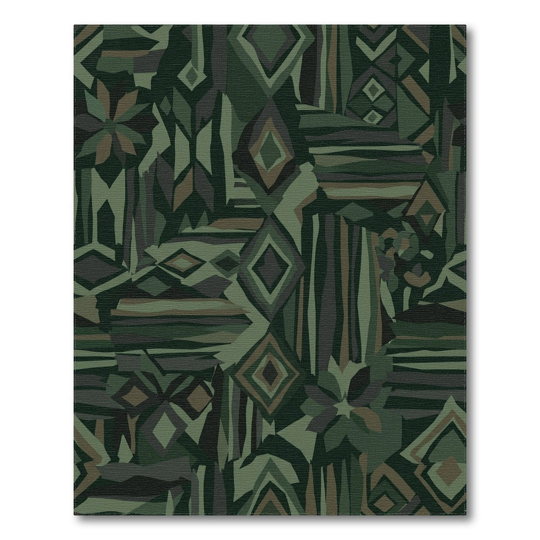 Deep Green Geometric Patchwork Rug