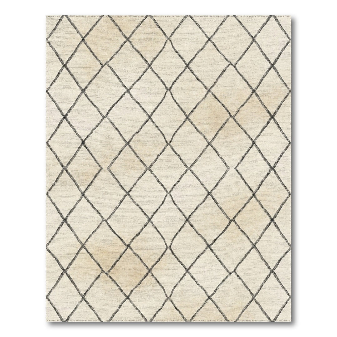 Cream and Charcoal Geometric Diamond Lattice Rug