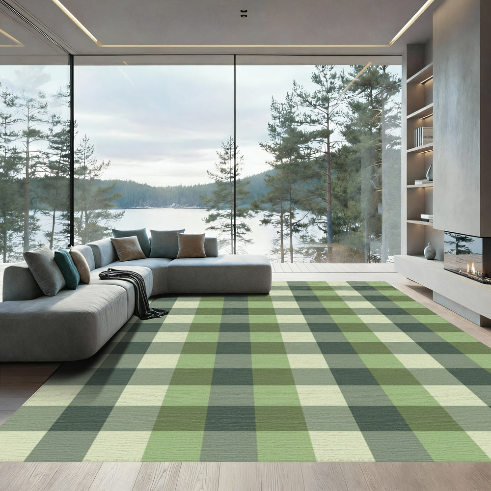 Green Plaid Square Texture Rug